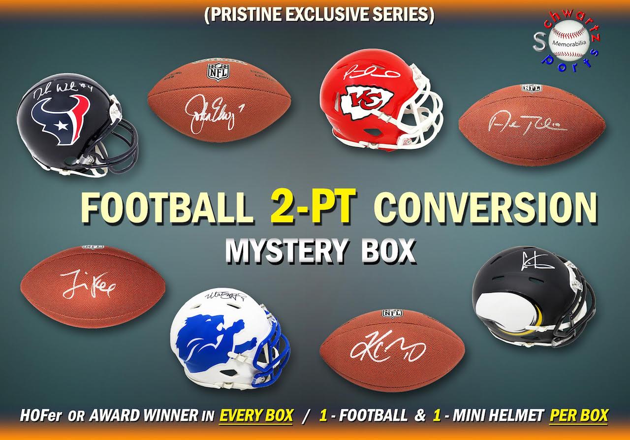 Schwartz Sports 2-PT CONVERSION Full Size Football/Mini Helmet Signed Mystery Box - Series 5 (Limited to 100)( 1- Football & 1 – Mini Helmet Per Box)