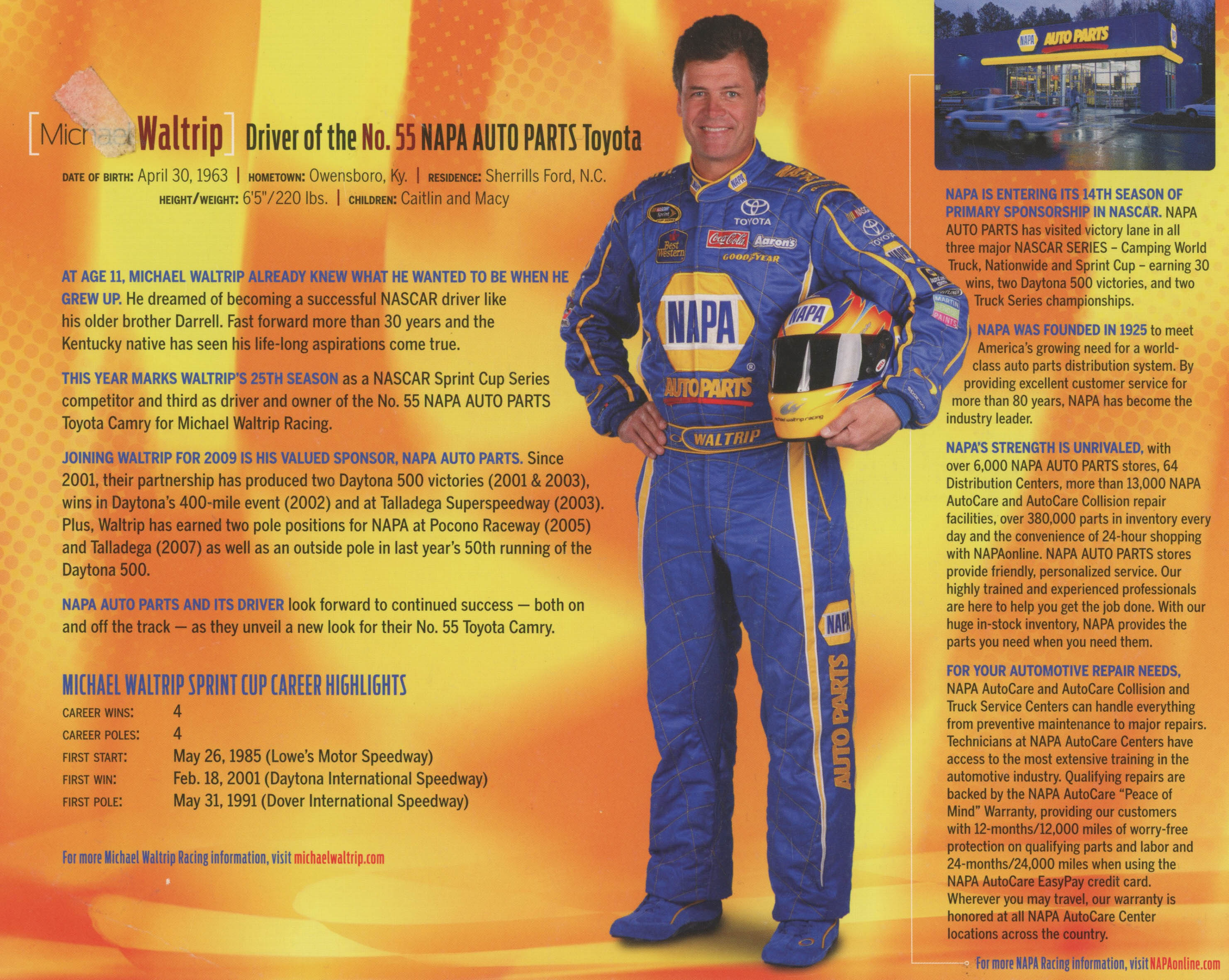 Michael Waltrip Signed 2009 NAPA Racing 8x10 Print (JSA COA)