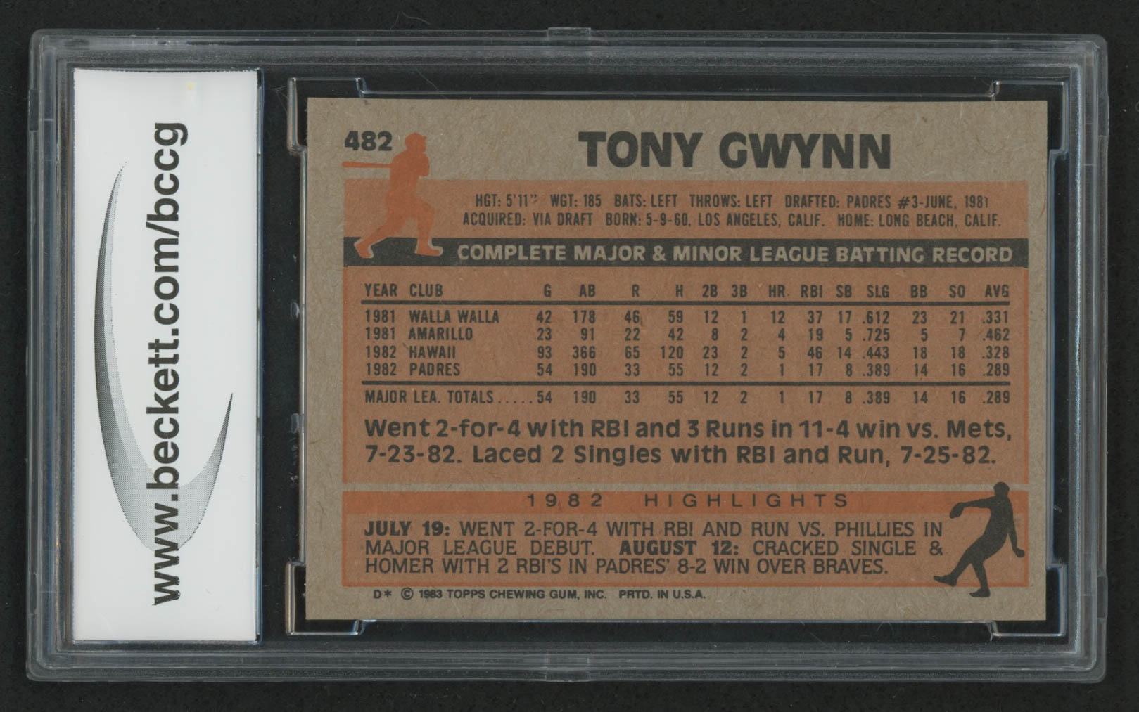 Tony Gwynn 1983 Topps #482 RC (BCCG 9)