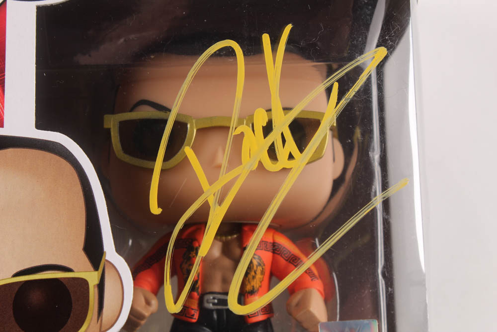Funko Pop! vinyl figure measures approximately 4" in height and has been hand-signed in yellow paint pen on the original packaging by Dwayne "The Rock" Johnson. Please see photos for details regarding the condition.