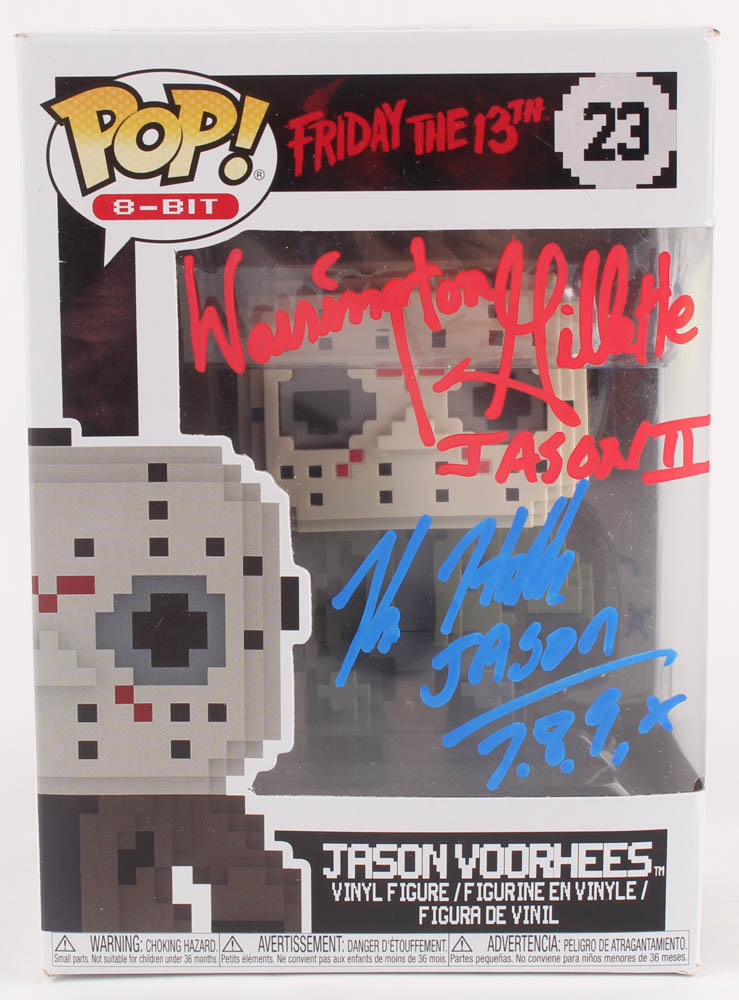 Kane Hodder & Warrington Gillette Signed "Friday the 13th" Jason Voorhees #23 Funko Pop! Vinyl Figure Inscribed "Jason 7, 8, 9, X" & "Jason II" (Beckett Hologram)