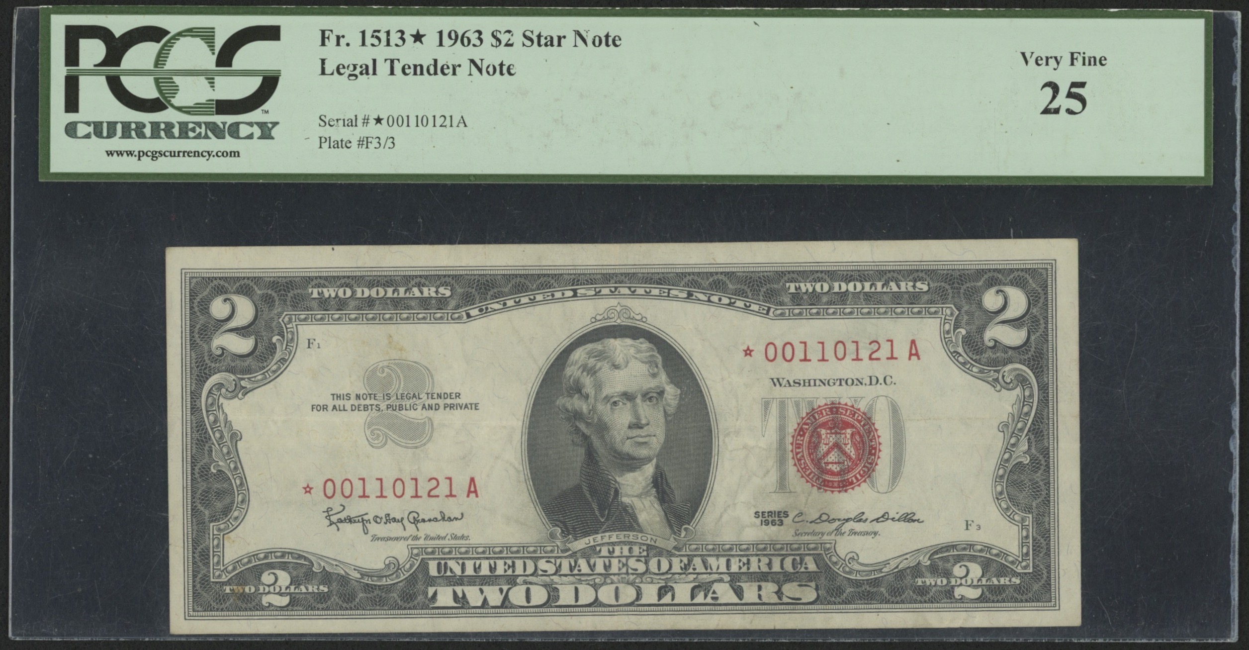 1963 $2 Two-Dollar Star Note Red Seal United States Legal Tender Note (PCGS 25)