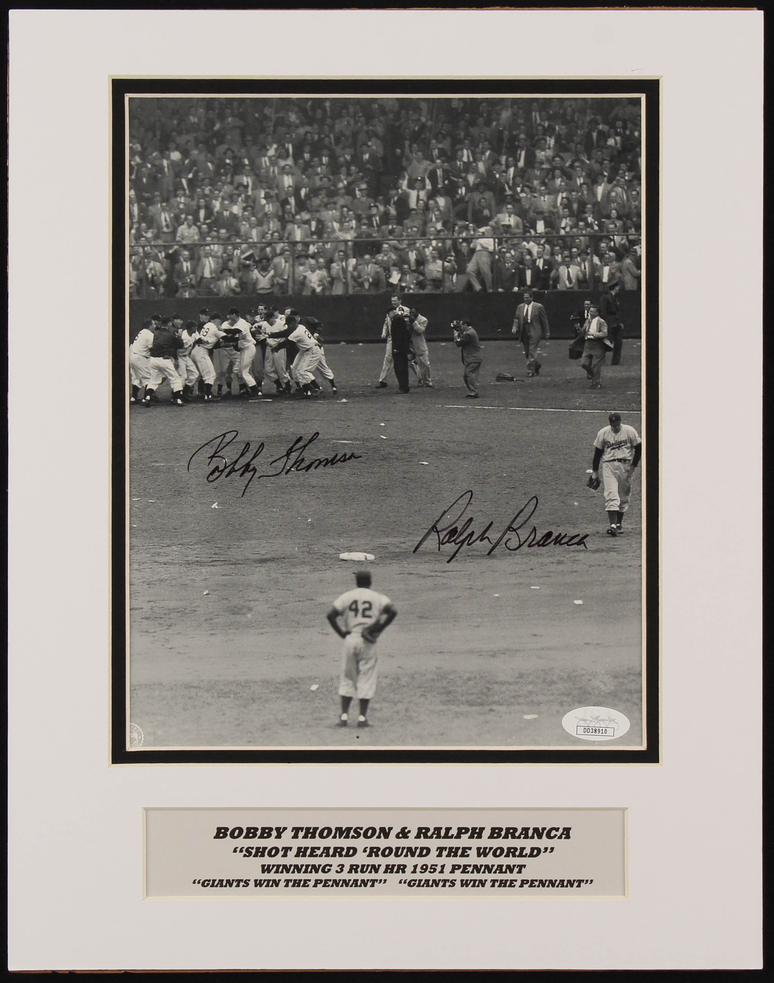 Bobby Thomson & Ralph Branca Signed Giants "The Shot Heard 'Round The World" 11x14 Custom Matted Photo Display (JSA COA)