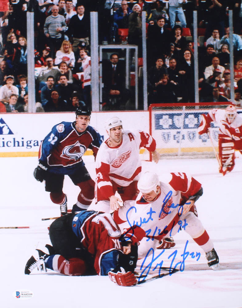 Darren McCarty Signed Red Wings 11x14 Photo Inscribed "Sweet Revenge" & "3/26/97" (Beckett COA)