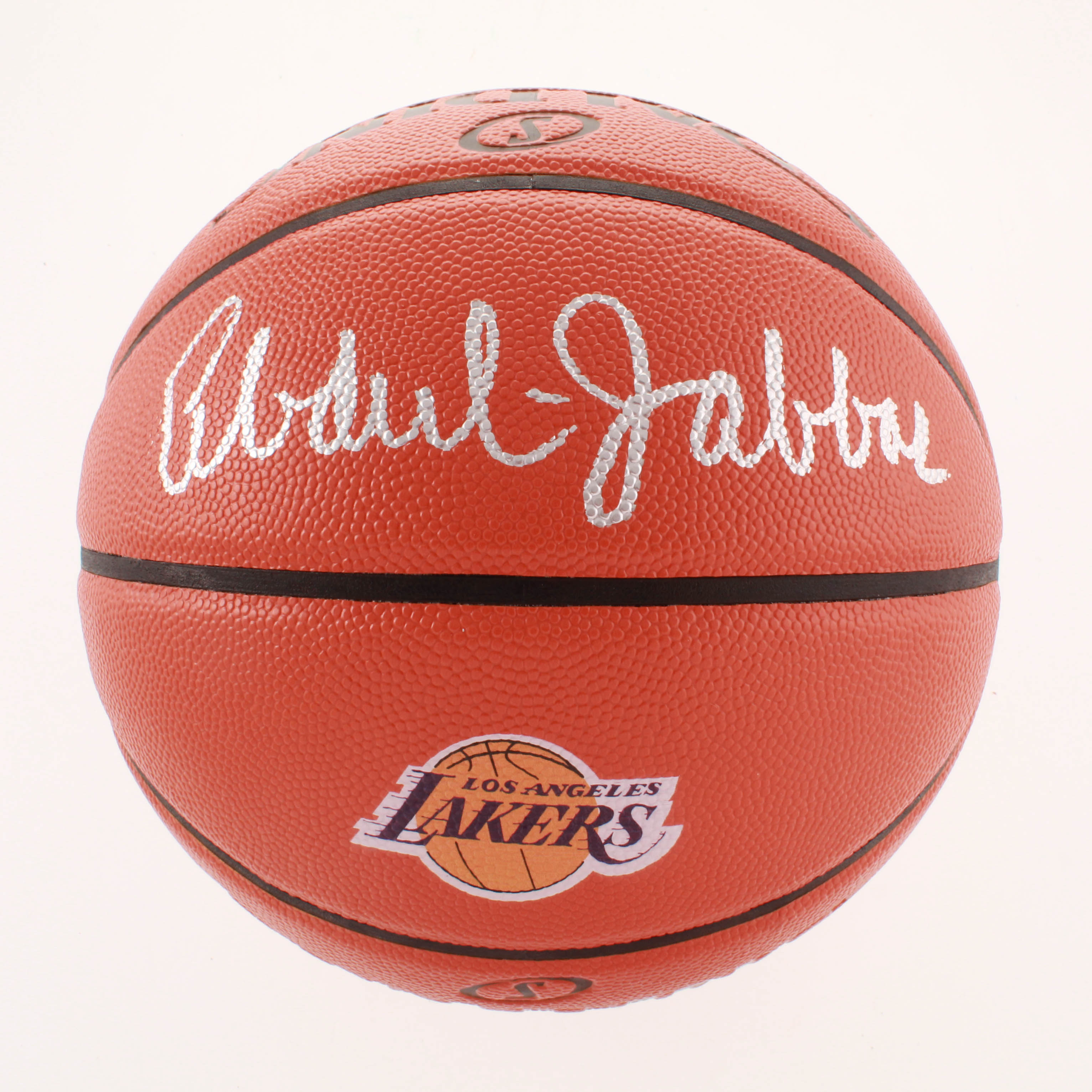 Spalding Los Angeles Lakers logo NBA Game Ball Series basketball. Hand-signed in silver paint pen by Kareem Abdul-Jabbar (HOF).