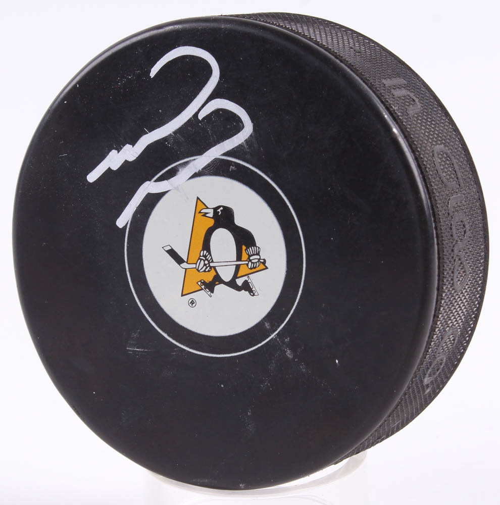 Pittsburgh Penguins Logo Hockey Puck. Hand-signed by Mark Recchi. Please see images for details regarding the condition of the puck.