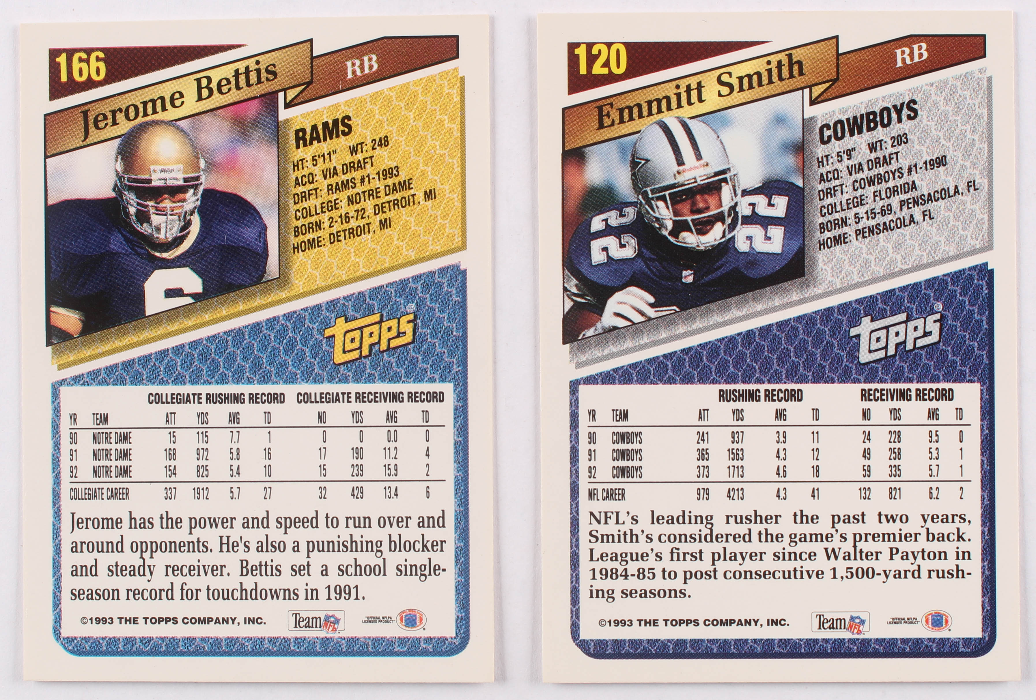 1993 Topps Series 1 Complete Set of (330) Football Cards with #120 Emmitt Smith, #166 Jerome Bettis RC