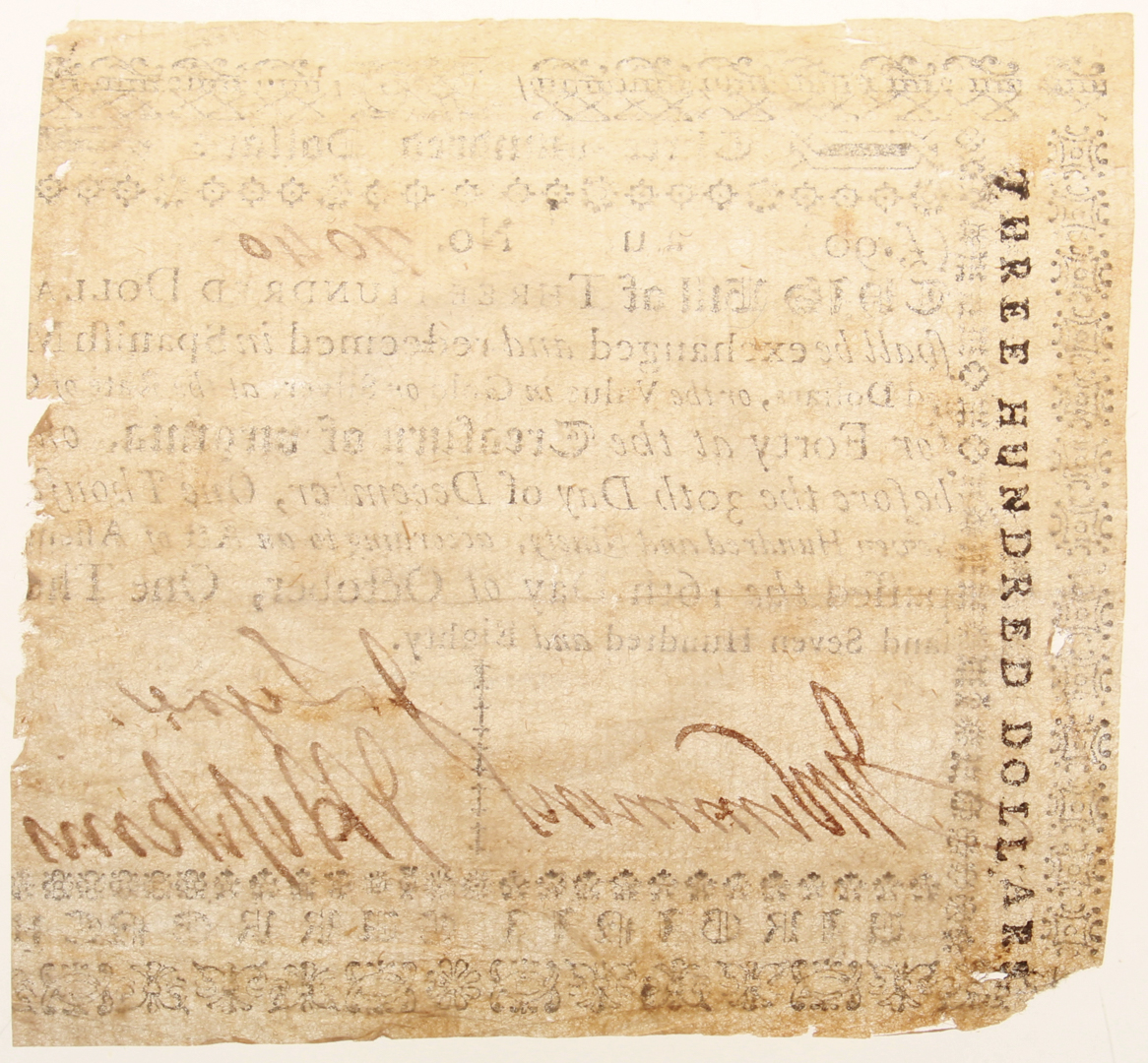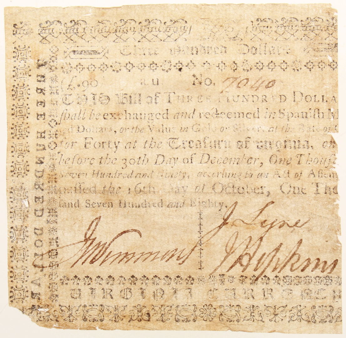 1790 $300 Three Hundred Dollars Virginia Colonial Currency Note