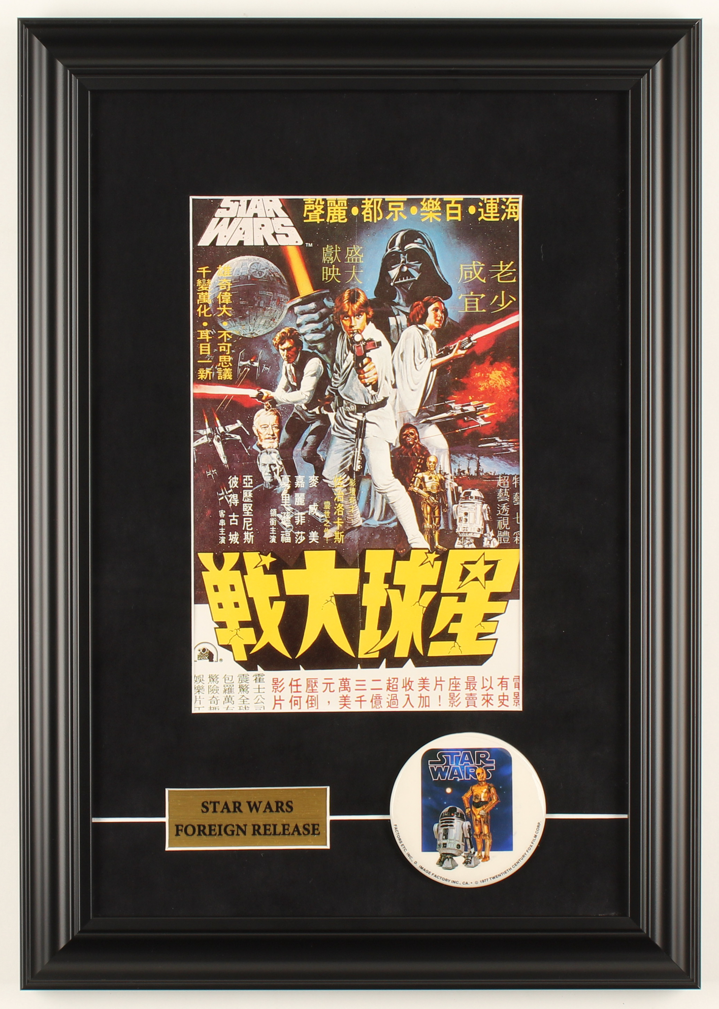 "Star Wars" 13x18.5 Custom Framed China Release Print Display with Star Wars Original 1977 Pin