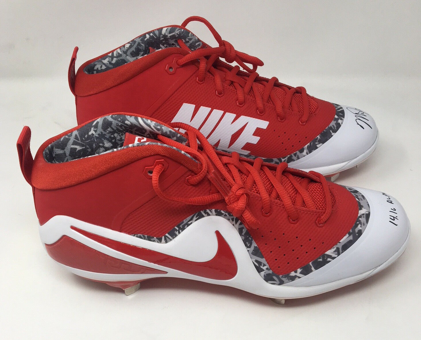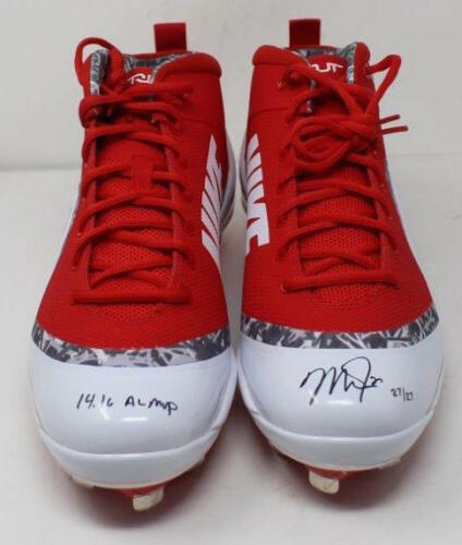 Pair of (2) Nike Zoom 4 baseball cleats. Cleat's have been hand-signed and inscribed in black felt-tip pen by Mike Trout (Los Angeles Angels).