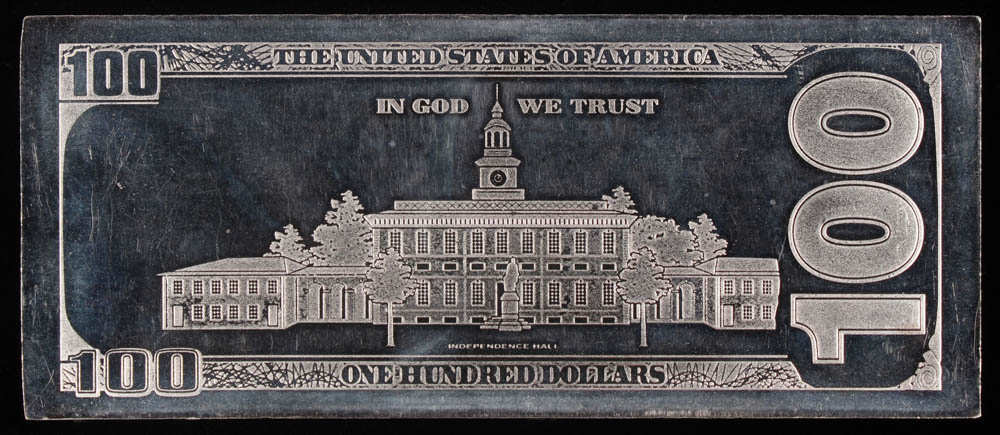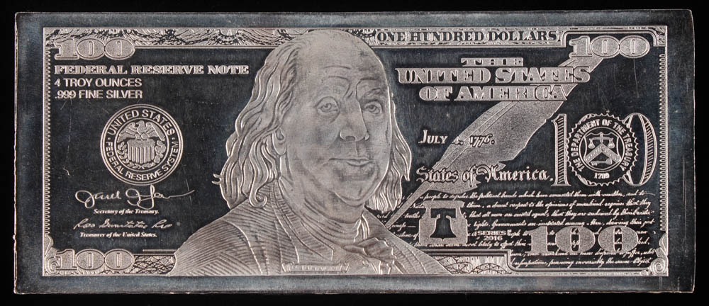 4 Troy Ounce .999 Fine Silver $100 Dollar Bill Bullion Bar