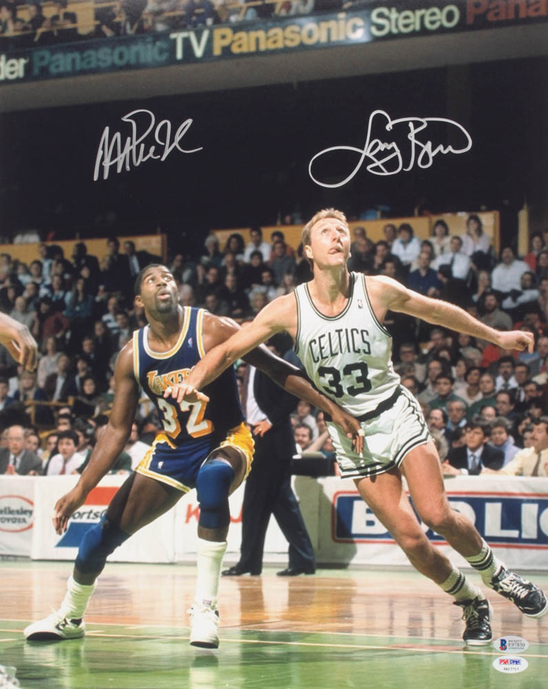 Magic Johnson & Larry Bird Signed 16x20 Photo (Beckett COA & PSA COA)