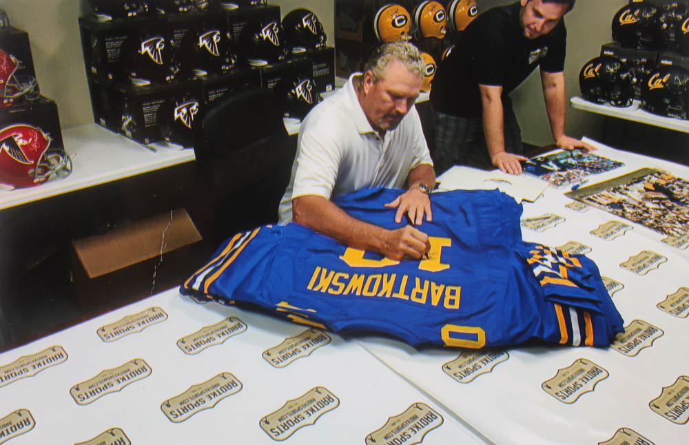 Custom on-field style jersey. Everything is sewn on, size XL. Hand-signed in blue felt-tip pen by Steve Bartkowski.