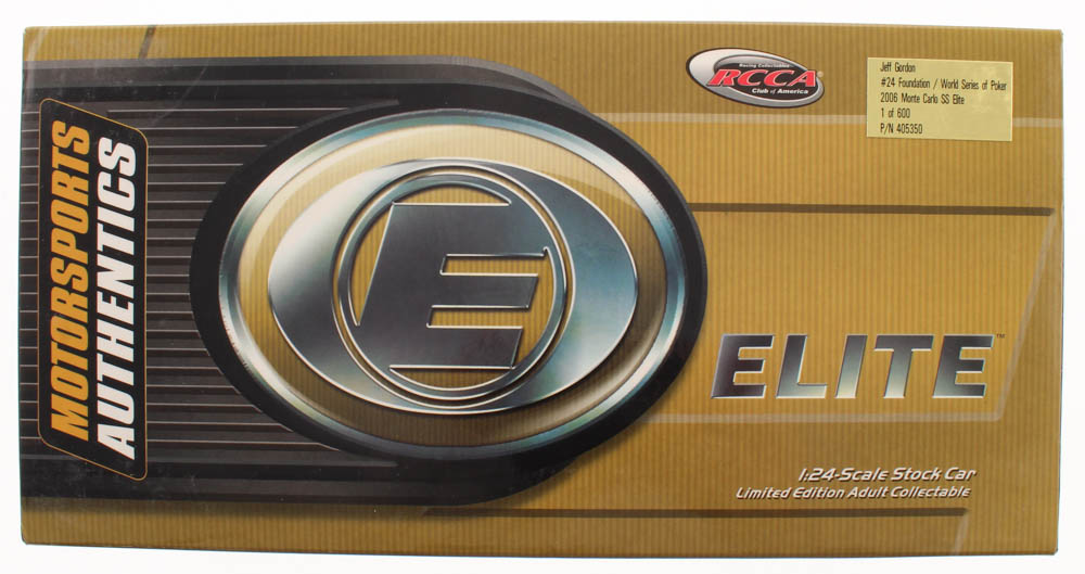 Jeff Gordon LE #24 Foundation / World Series of Poker / 2006 Monte Carlo SS Elite 1:24 Scale Die Cast Car. The car is limited edition #/600. Please note, car is unsigned. See images for details regarding the condition of the packaging.