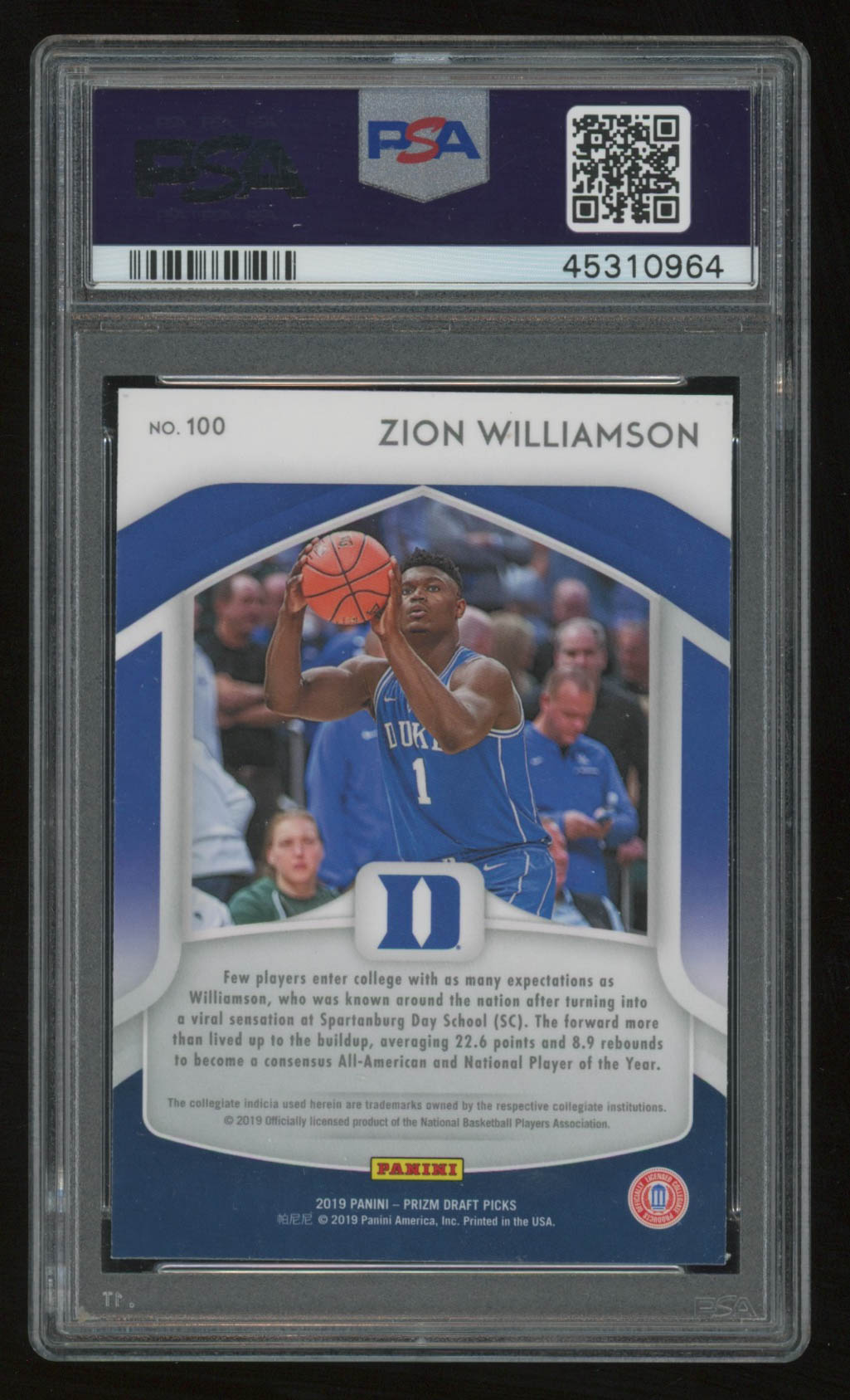 Zion Williamson 2019 Panini Prizm #100 RC (PSA 9)