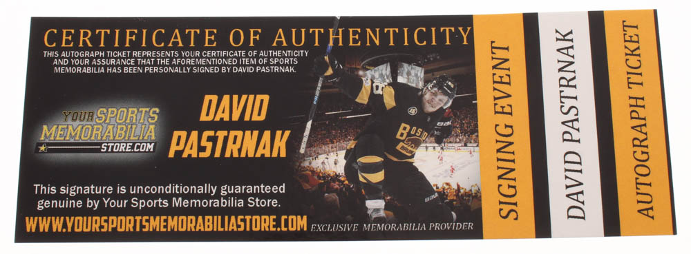The lot / autograph(s) includes an official Your Sports Memorabilia Store David Pastrnak hologram and COA for authenticity purposes.