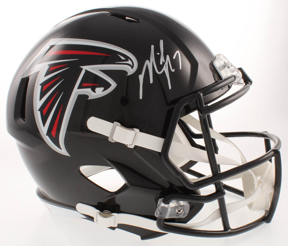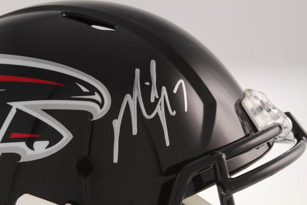 Riddell Atlanta Falcons full-size replica speed helmet. Hand-signed in silver paint pen by Michael Vick.