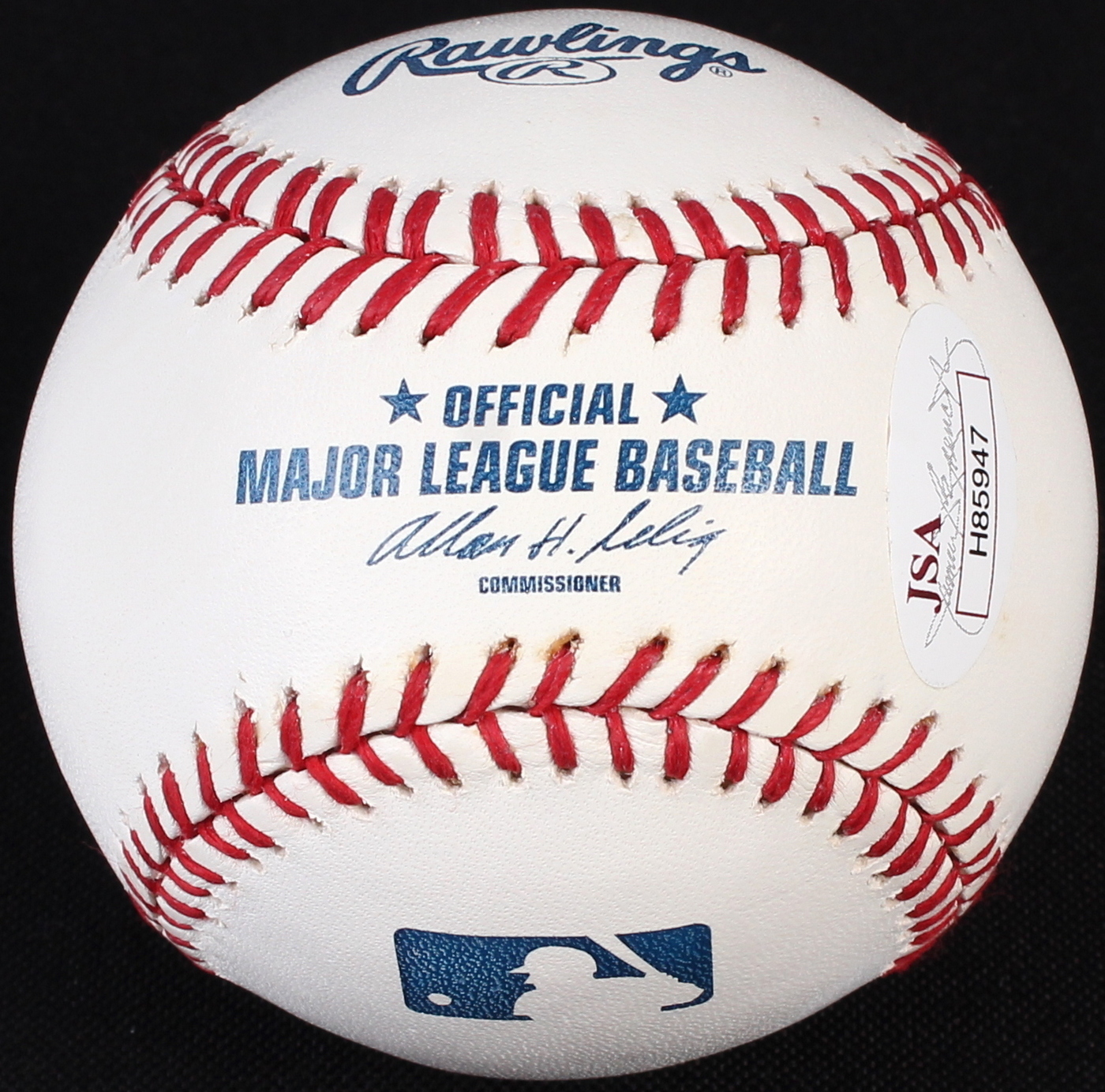 Official Major League baseball hand-signed in blue ink pen by Mike Trout (Angels). The autograph includes an official James Spence Authentication (JSA) hologram and matching COA for authenticity purposes.