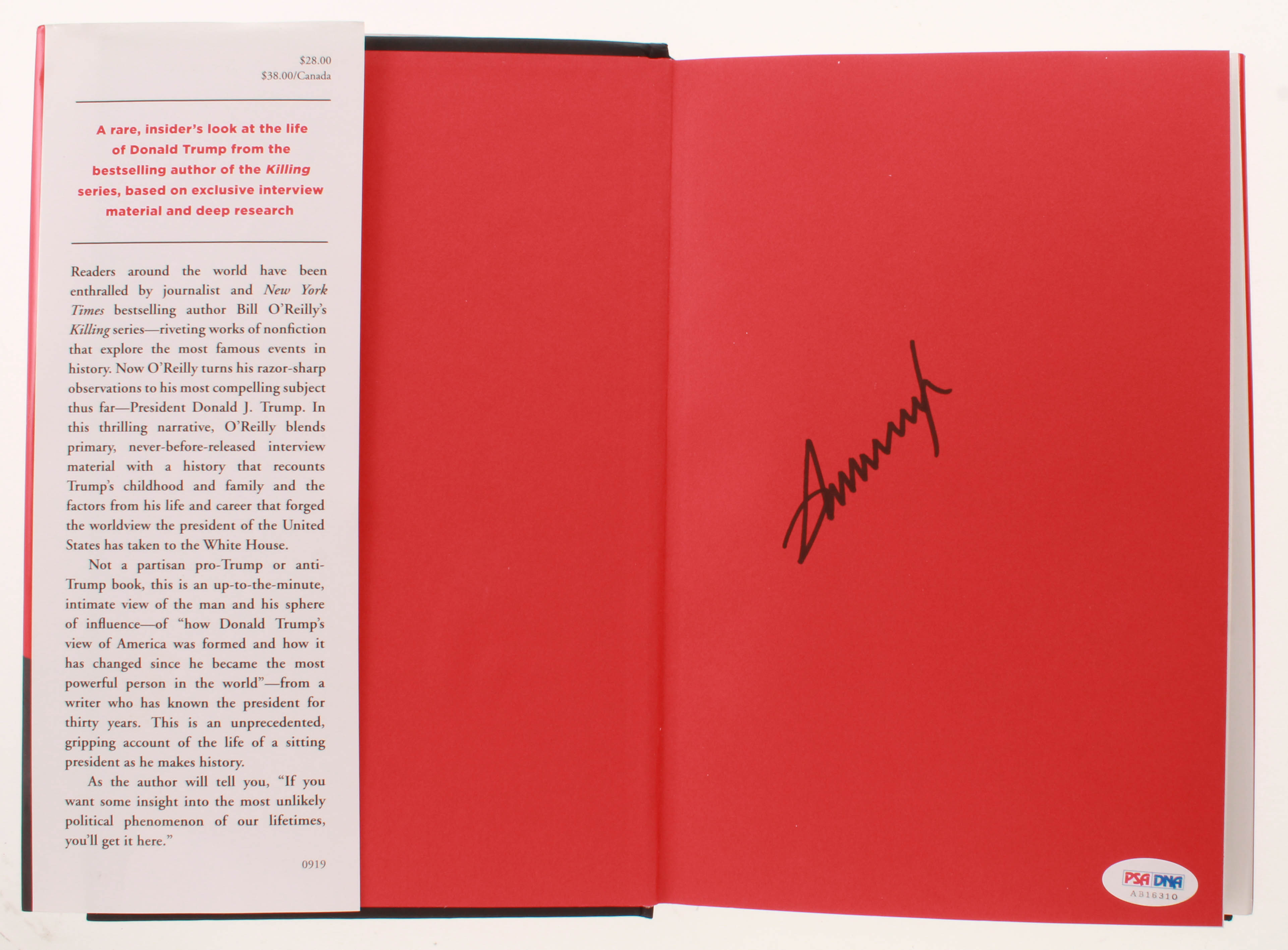 Hardcover book has been hand-signed in black felt-tip pen on the inside cover page by Donald Trump.