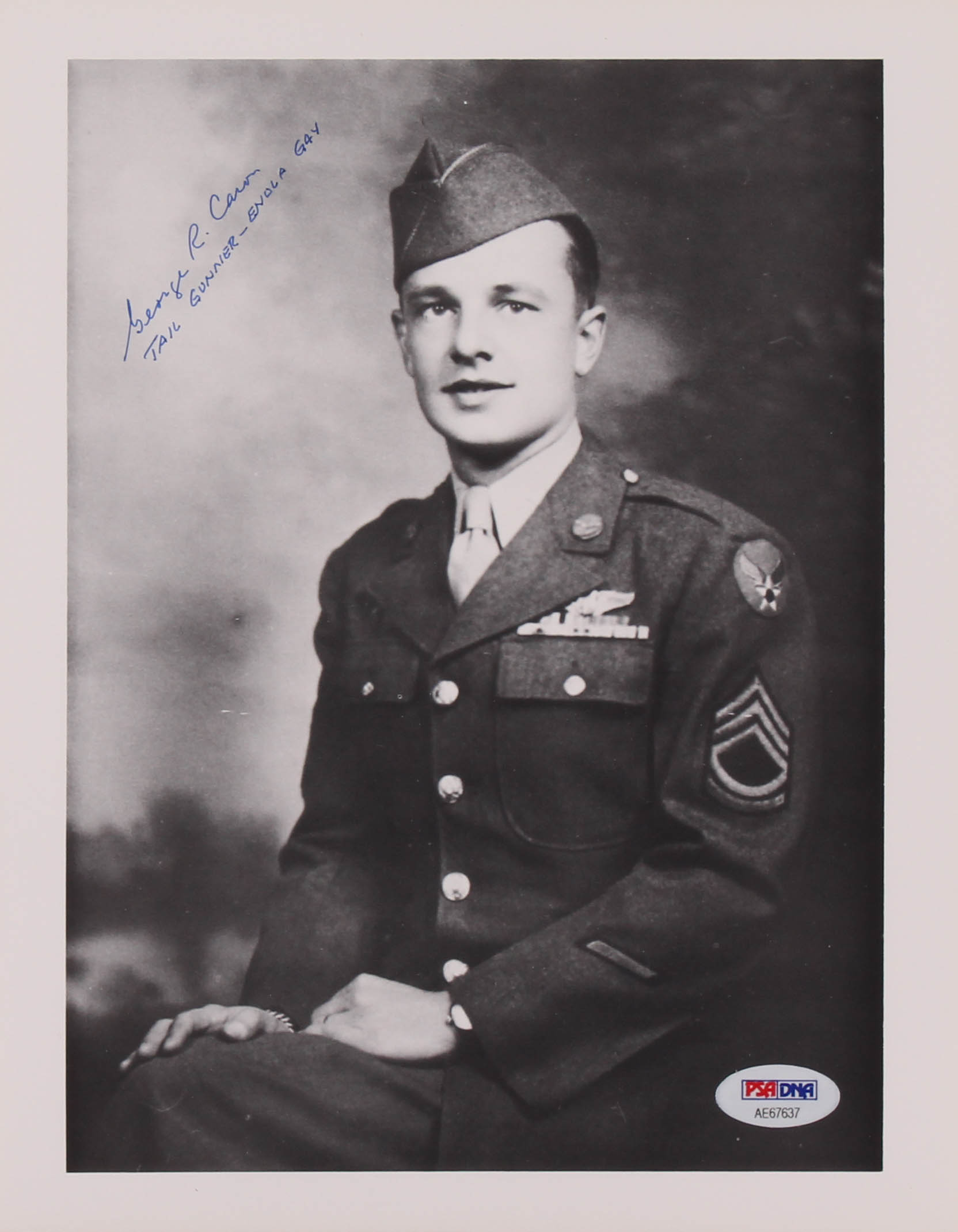 George R. Caron Signed WWII 8x10 Photo Inscribed "Tail Gunner - Enola Gay (PSA LOA)