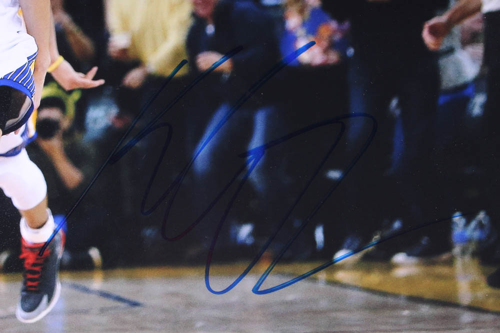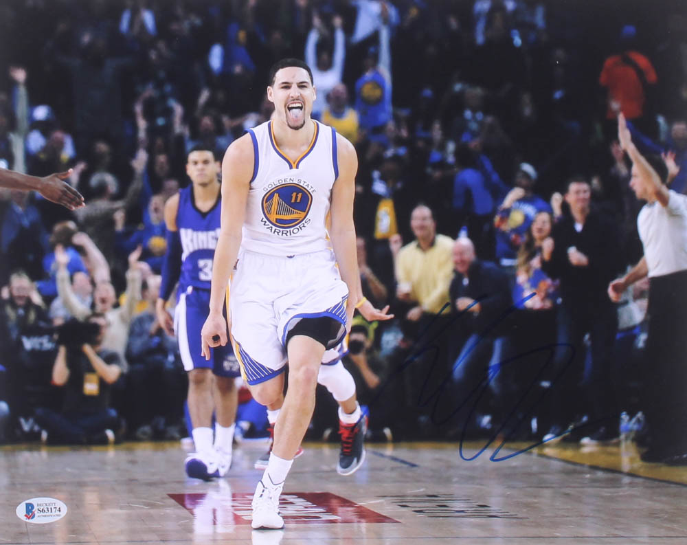 Photo measures 11" x 14" in size and has been hand-signed in blue felt-tip pen by Klay Thompson. (Golden State Warriors)