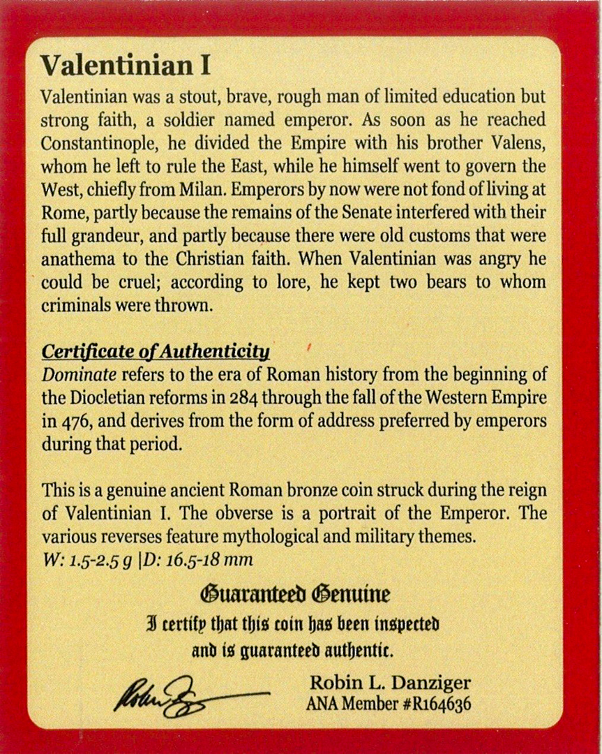 Valentinian I. AD 364-375 - Late Roman Empire: The Dominate Ancient Bronze Coin