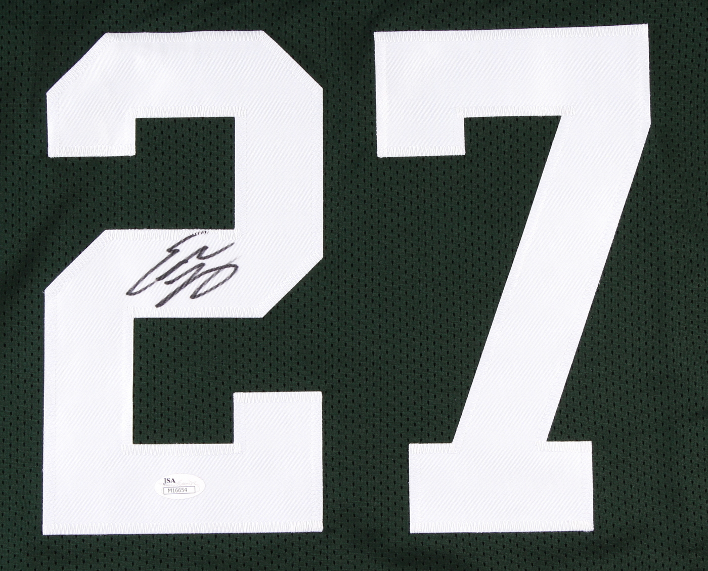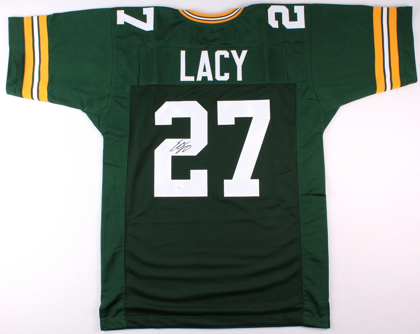 Custom on-field style jersey. Everything sewn on, size XL. Hand-signed in black felt tip pen by Eddie Lacy.The autograph includes an official James Spence Authentication (JSA) hologram and matching COA for authenticity purposes.