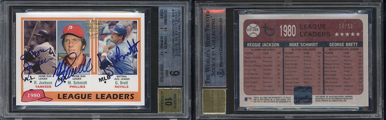 2005 Topps Reggie Jackson/Mike Schmidt/George Brett Triple Auto /50 BGS 9/10!