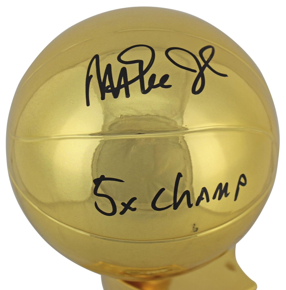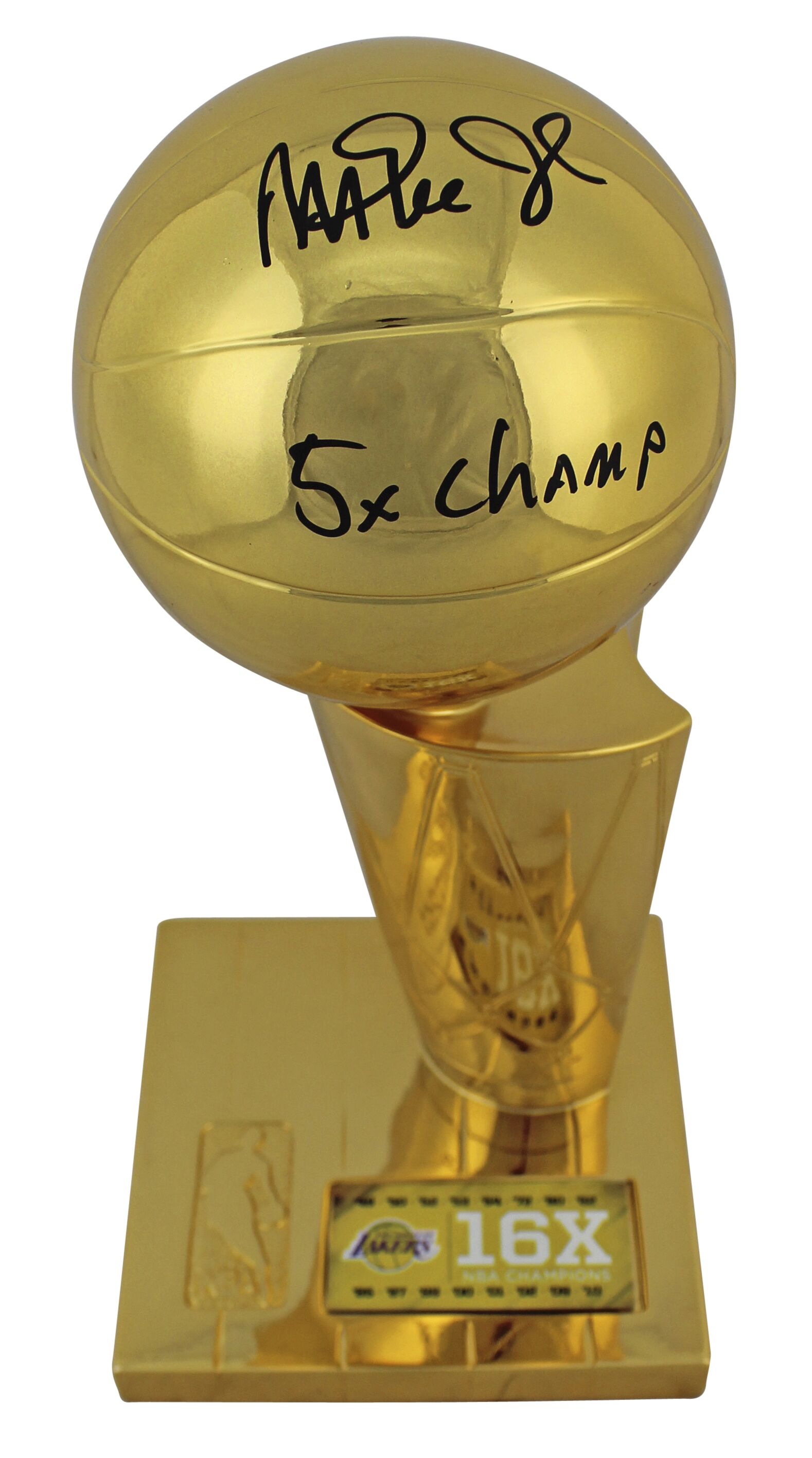 Magic Johnson Signed Lakers 12" Replica Larry O'Brien Trophy Inscribed "5x Champ" (Beckett COA)