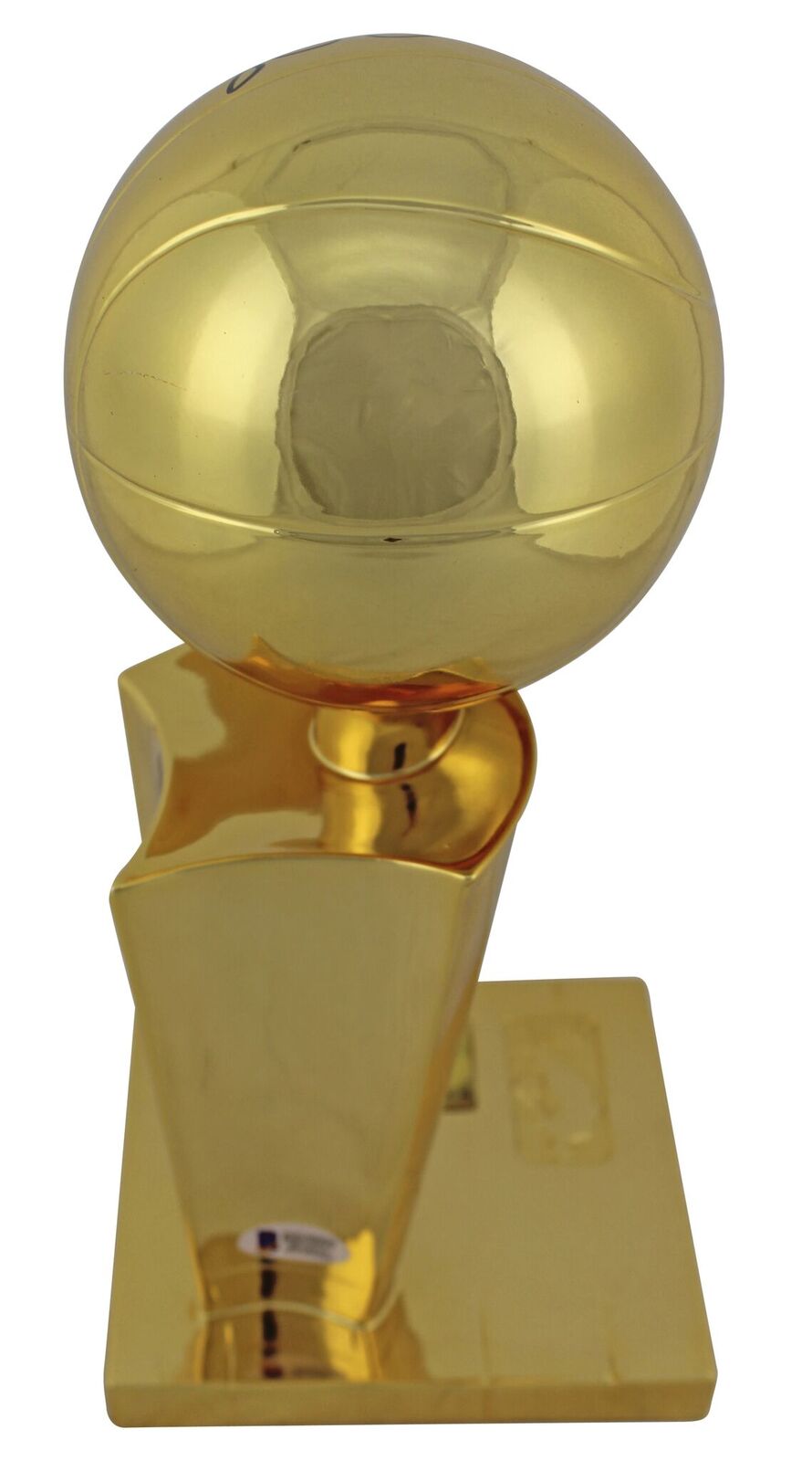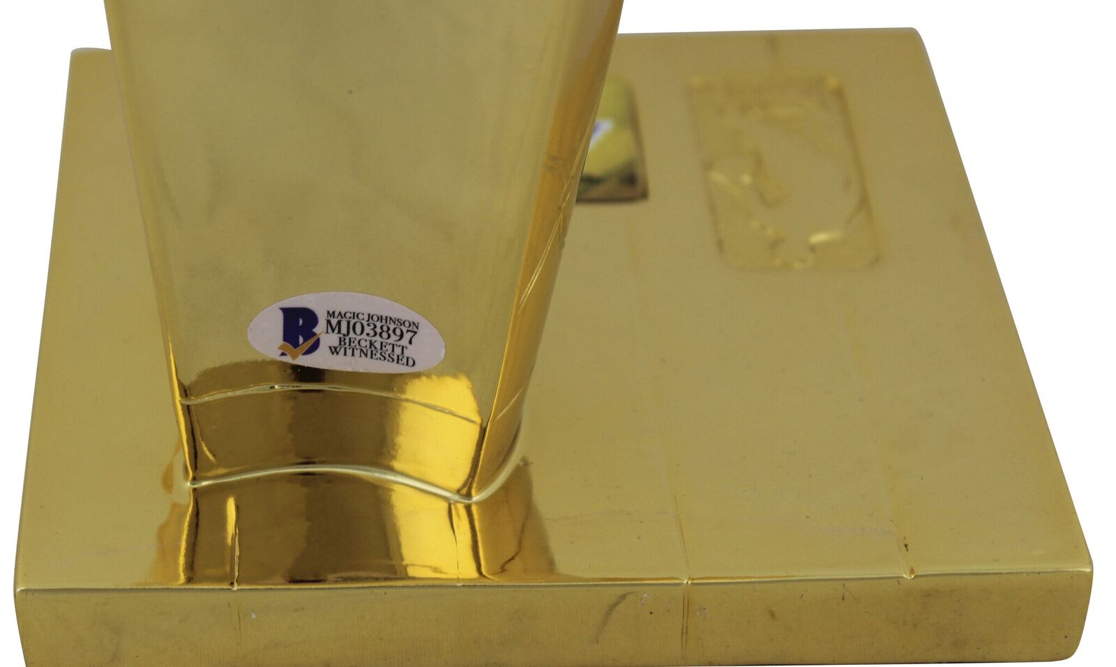 The Larry O'Brien replica trophy measures approximately 12" in height. Hand-signed in black felt-tip pen by Magic Johnson (Los Angeles Lakers, HOF).