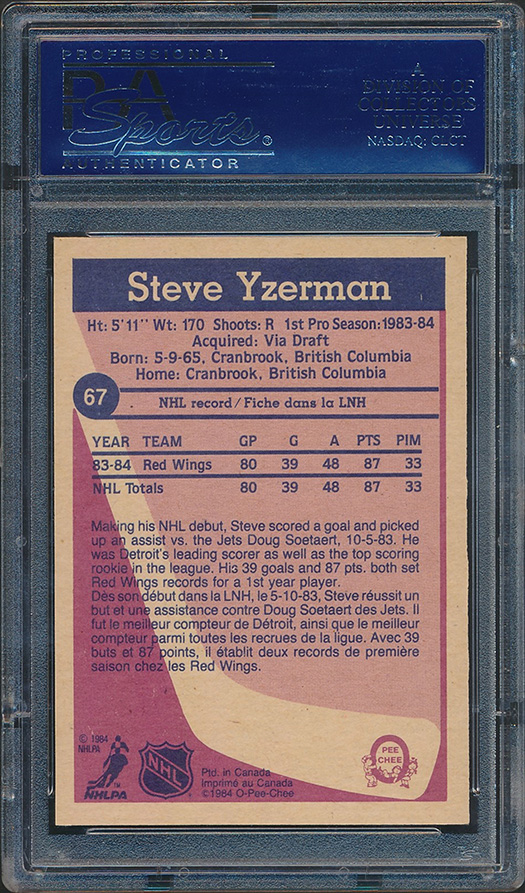 Steve Yzerman 1984-85 O-Pee-Chee #67 RC (PSA 9)