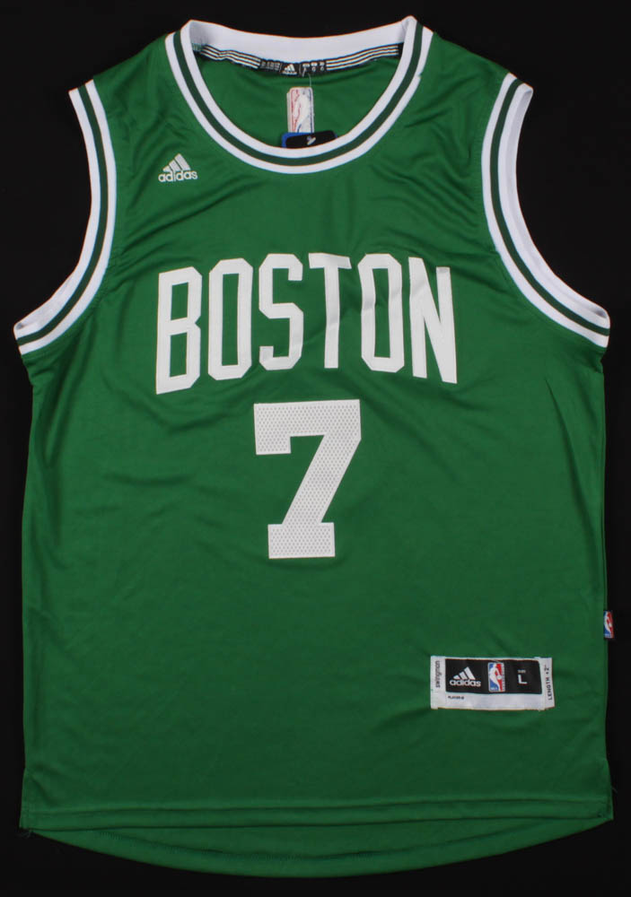 Addias on court style jersey with everything sewn on, size L. Hand signed in silver paint pen by Jaylen Brown (Boston Celtics).
