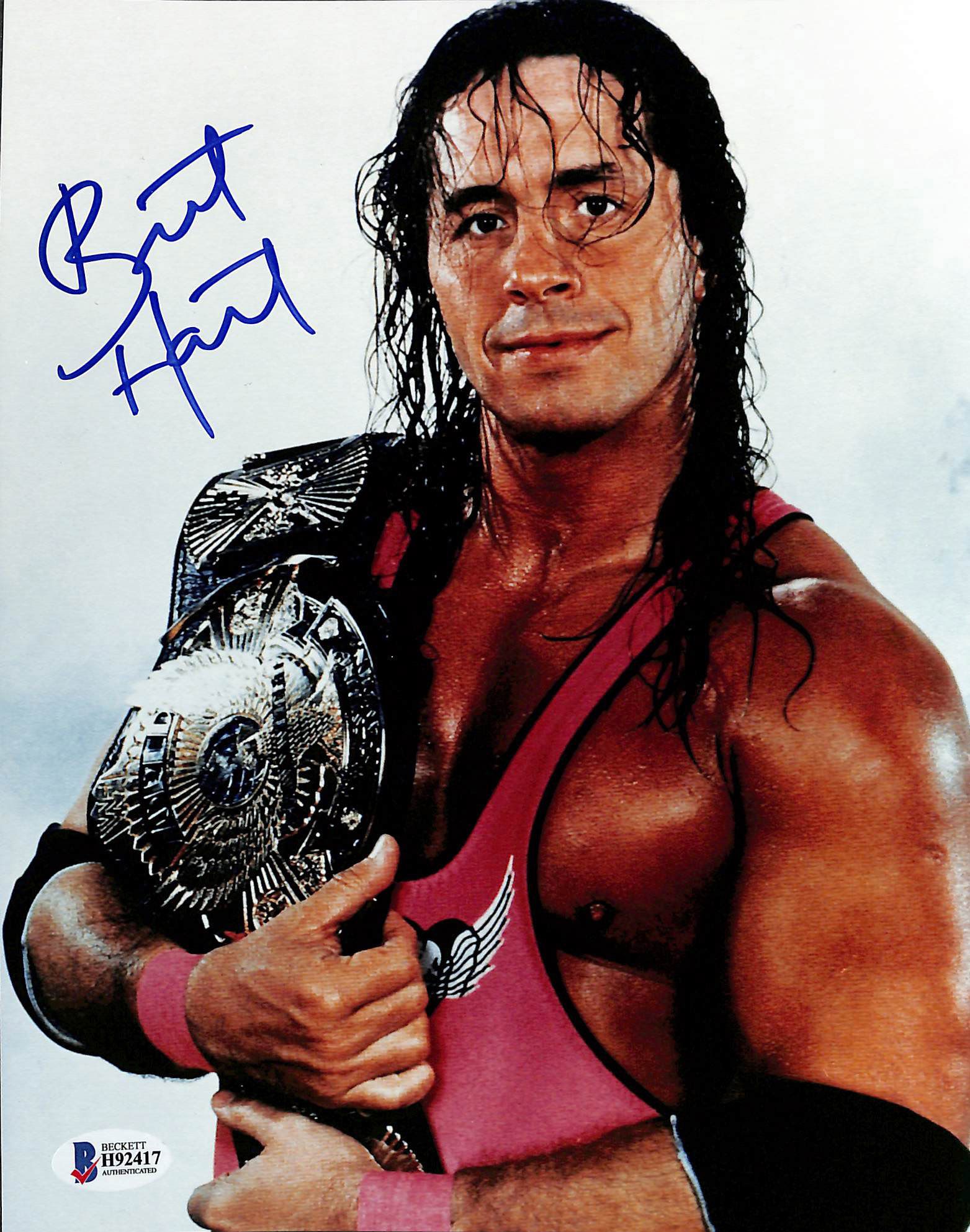 Photo measures 8" x 10" in size. Hand-signed by Bret Hart.