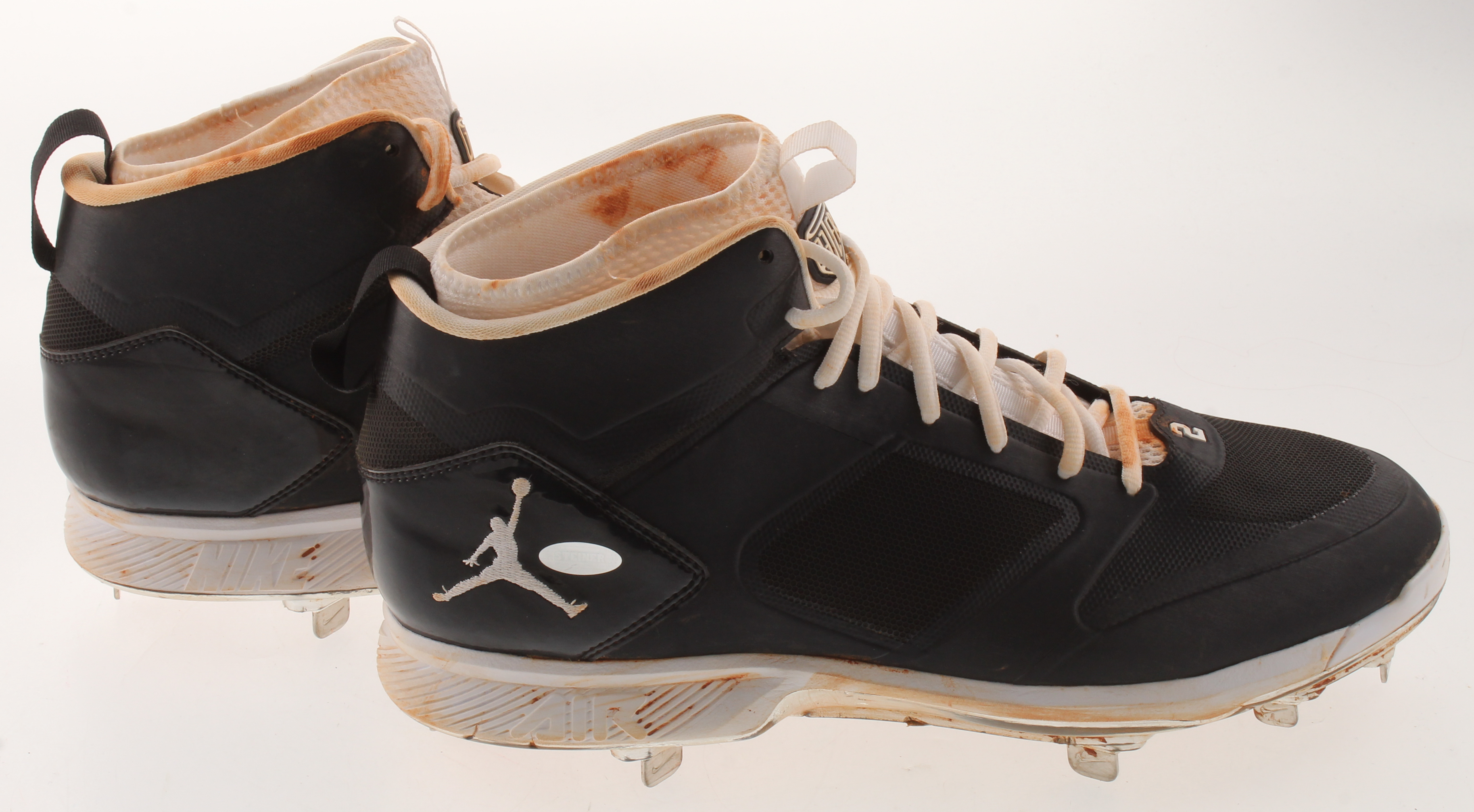 Lot includes both 2014 Nike Air Jordan baseball cleats. The cleats have been game-used by Derek Jeter in 2014, his final season. Please see photos for details regarding the condition of the cleats.