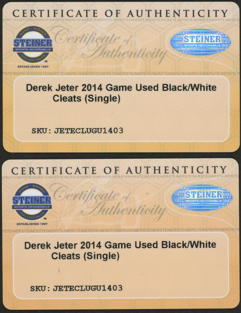 Pair of (2) Derek Jeter Game Used 2014 Final Season Nike Air Jordan Baseball Cleats (Steiner COA)