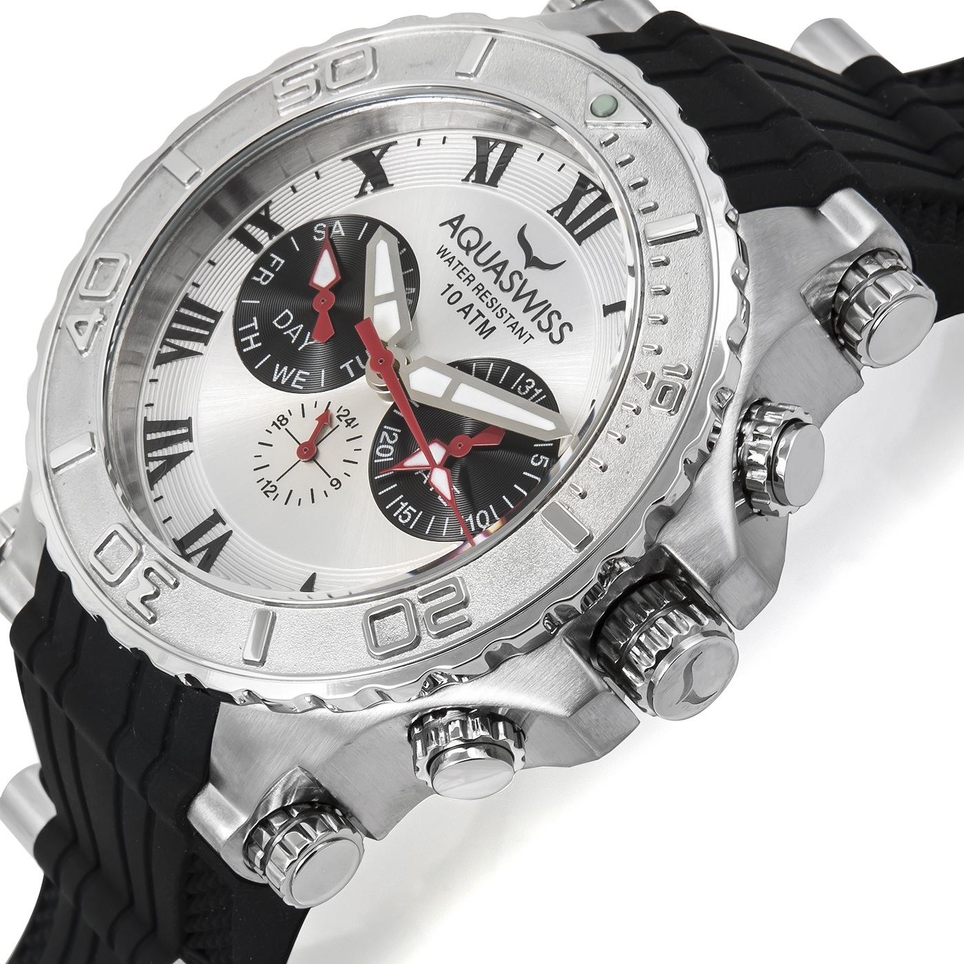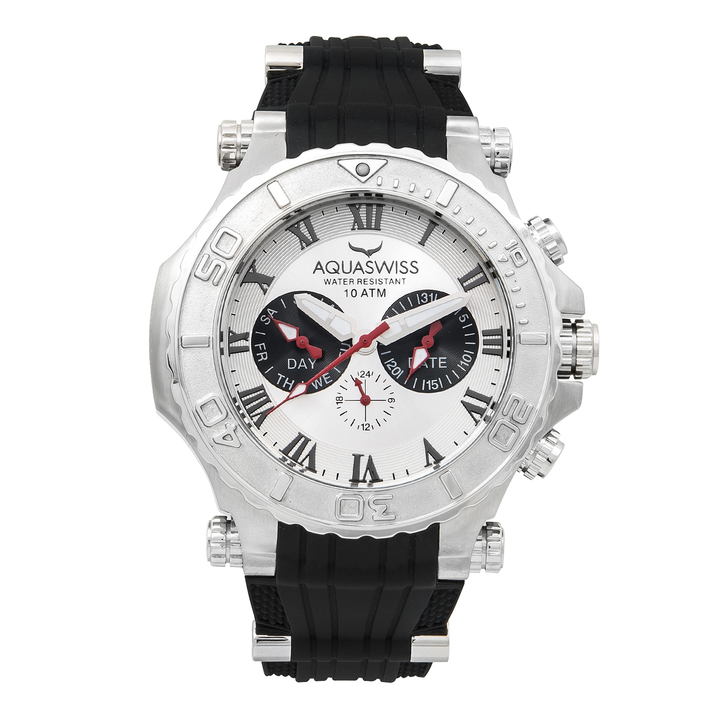 Introducing the AQUASWISS Collection, stunning watches that can be worn for sport, casual, or dress. All AQUASWISS timepieces are water resistant up to 10 ATM (330 feet). All AQUASWISS watches come with Swiss movements. This AQUASWISS watch is BRAND NEW and comes in its original box with owners manual and 2 year warranty (from Manufacturer). AQUASWISS watches are truly high-quality timepieces. (All weights, measurements, and colors are approximate and may vary slightly from the listed dimensions or as seen in the image).