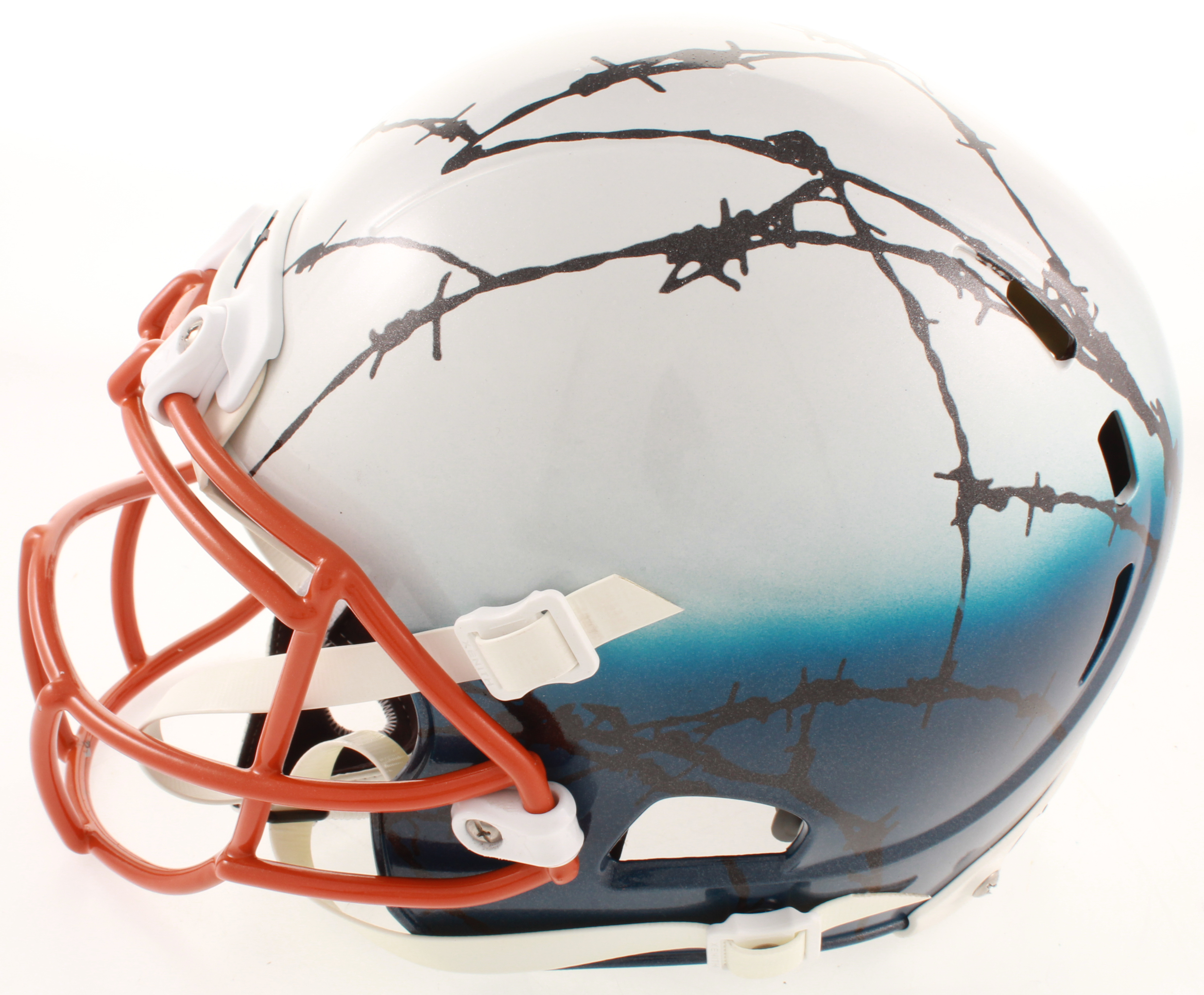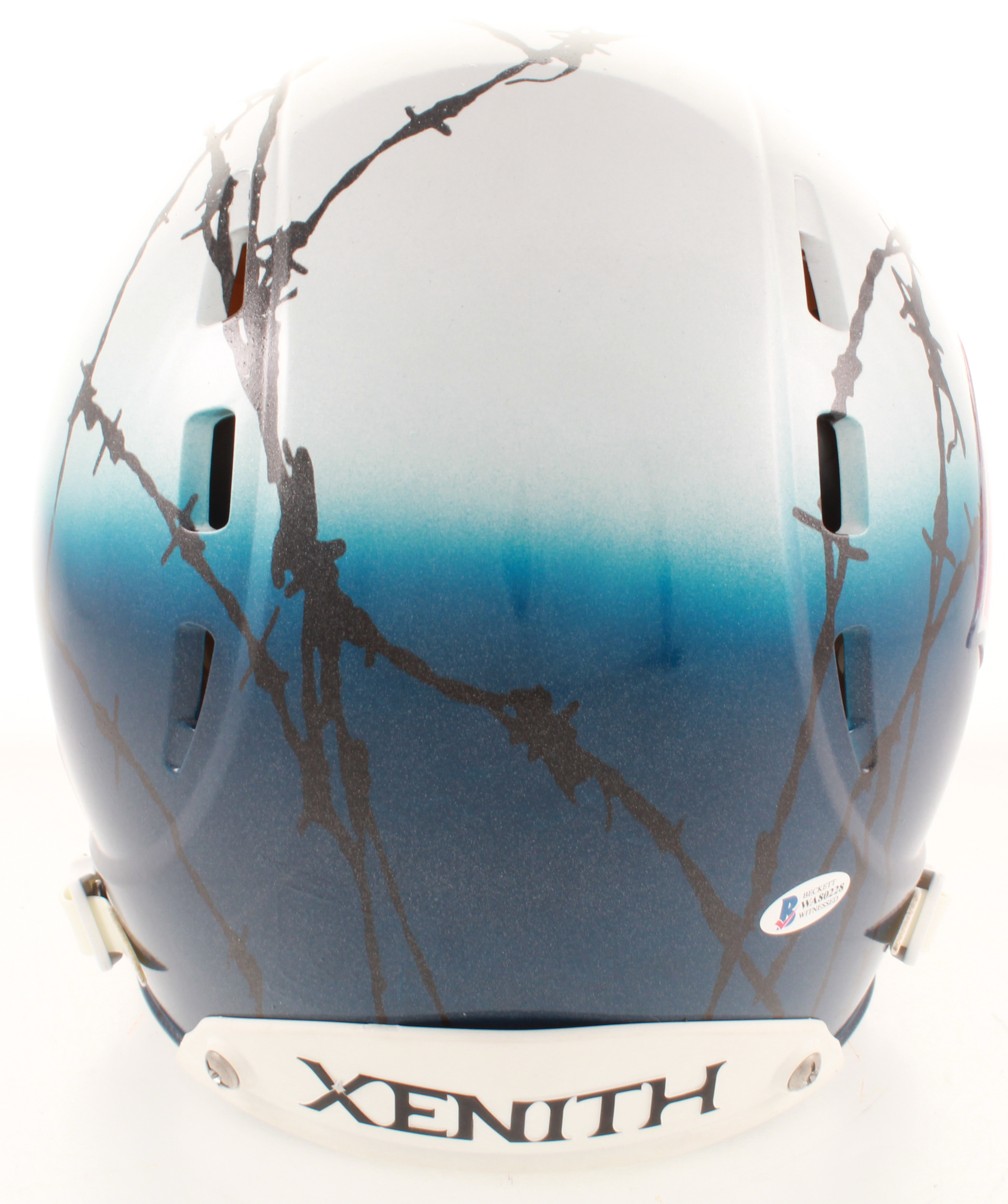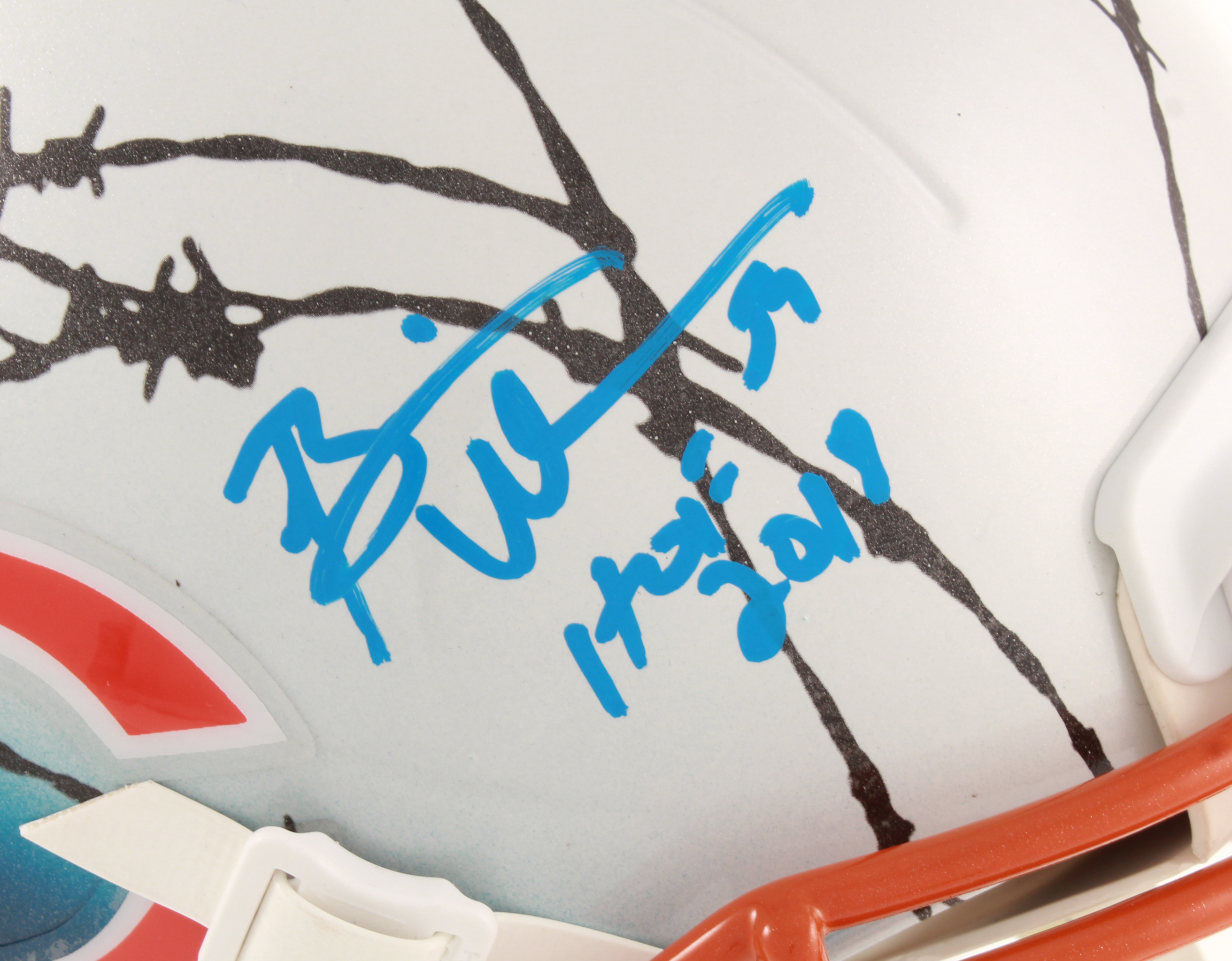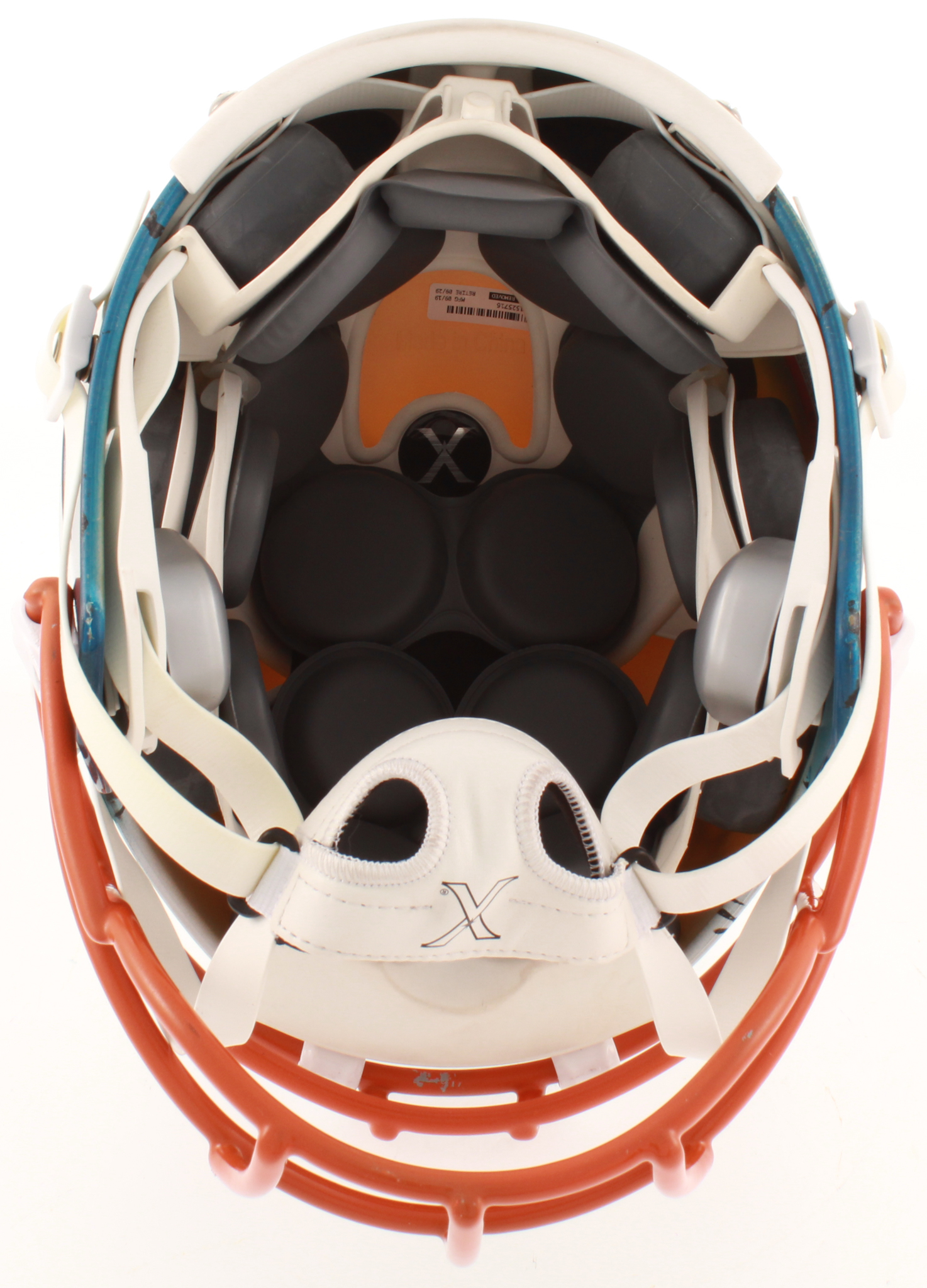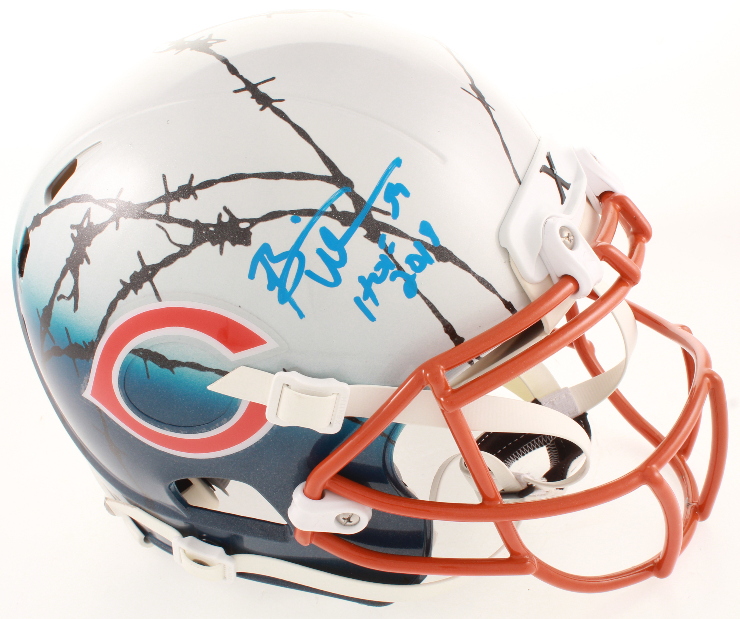 Xenith Chicago Bears full-size authentic on-field hydro-dipped youth helmet. Hand-signed and inscribed in blue paint pen by Brian Urlacher (HOF).