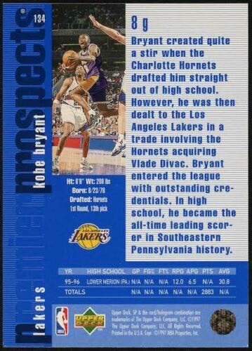 This a Kobe Bryant Rookie 1996-97 Upper Deck SP #134 RC Trading Card. This card is in mint condition.