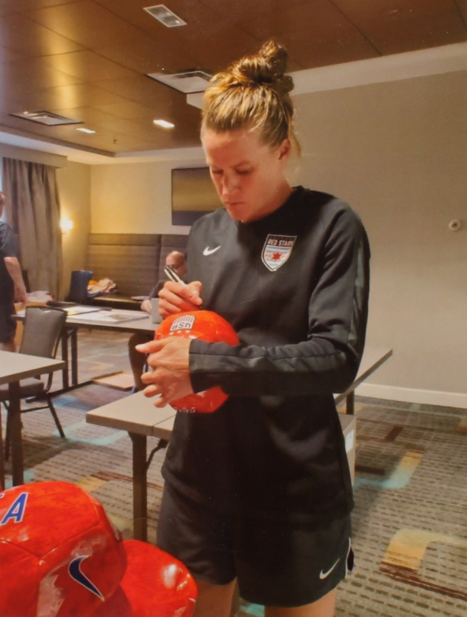 Nike Team USA logo soccer ball has been hand-signed in black felt-tip pen by Alyssa Naeher.