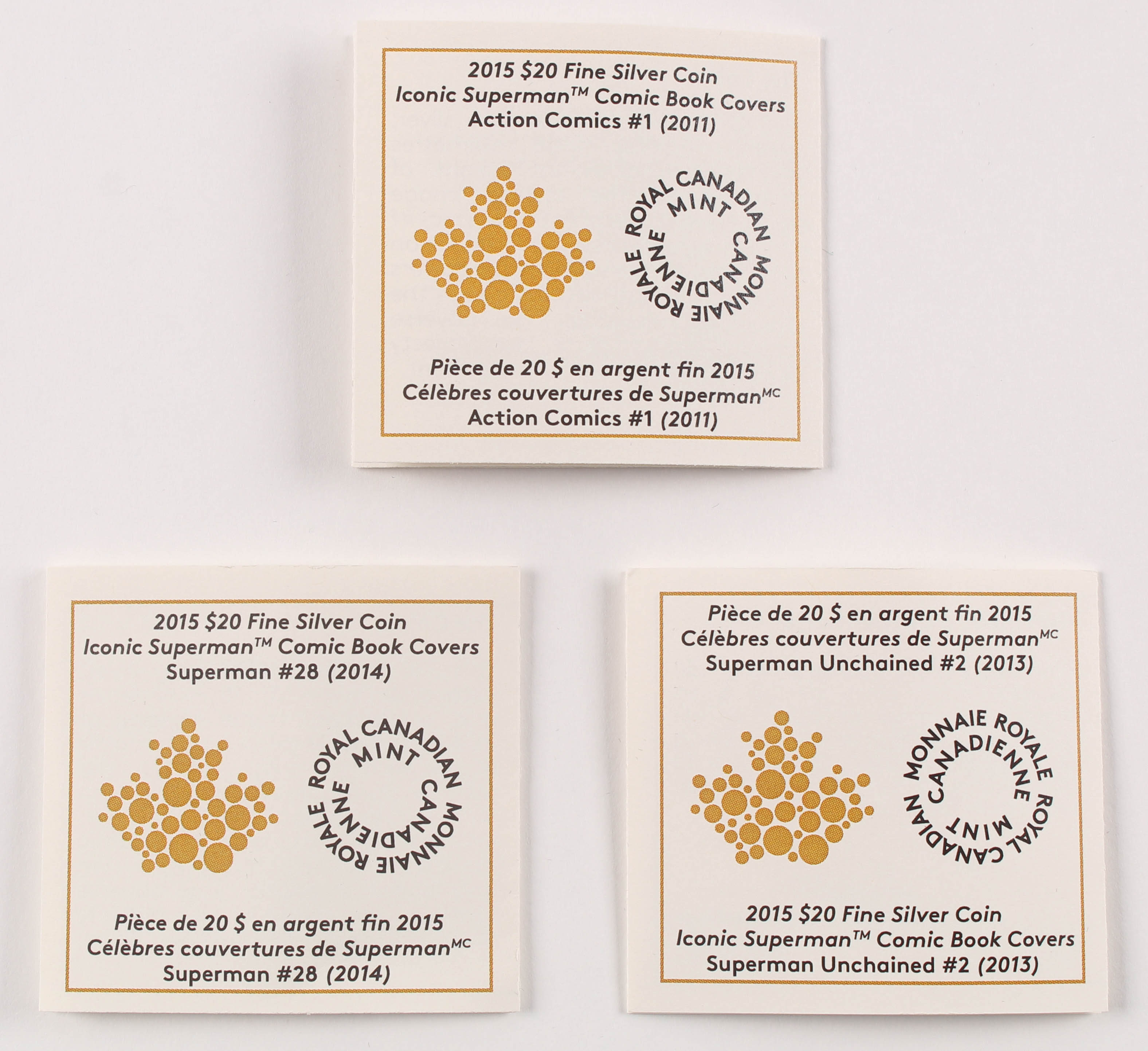 Lot of (3) 2015 Iconic Superman Comic Book Covers $20 Twenty Silver Dollar Coins