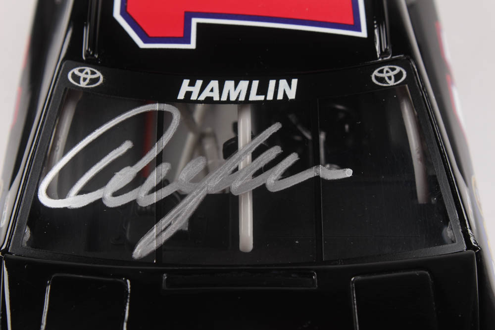 Premium die-cast car hand-signed on the windshield in silver paint pen by Denny Hamlin. The car is limited edition to just 628 produced and includes the original packaging.
