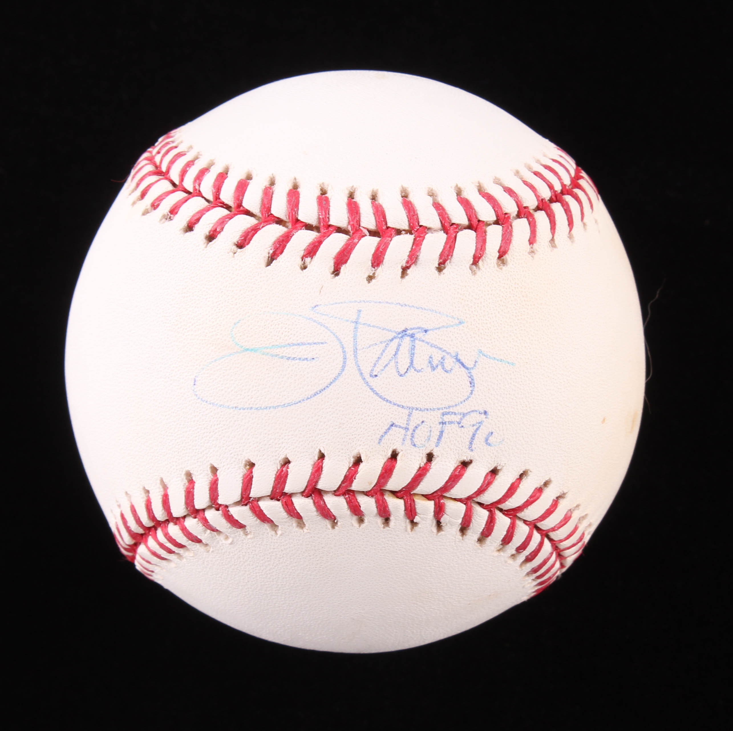 Rawlings Official Major League baseball. Hand-signed and inscribed in blue ink pen by Jim Palmer (Baltimore Orioles, HOF). Please note, baseball shows signs of natural toning.