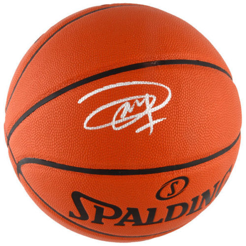 Spalding basketball has been hand-signed in silver paint pen by Joel Embiid (Philadelphia 76ers).