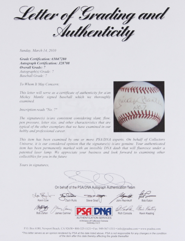 Mickey Mantle Signed OAL Baseball Inscribed "No. 7" (PSA LOA)