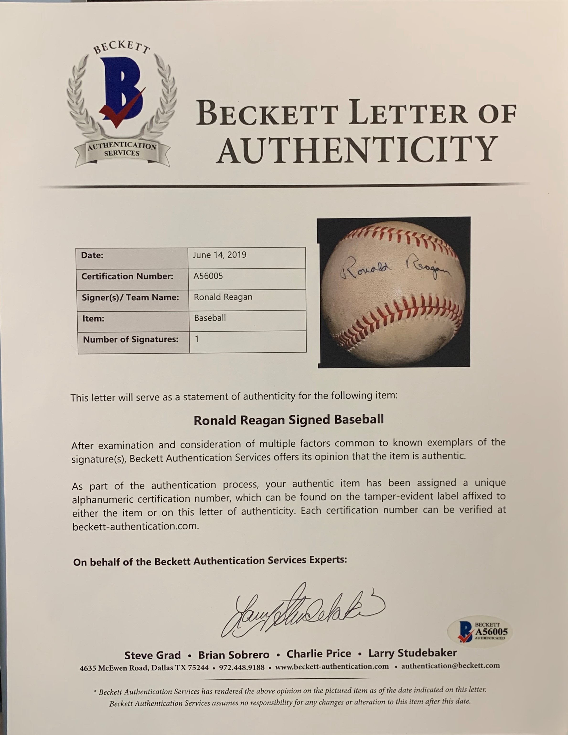 Ronald Reagan Signed ONL Baseball (Beckett LOA)