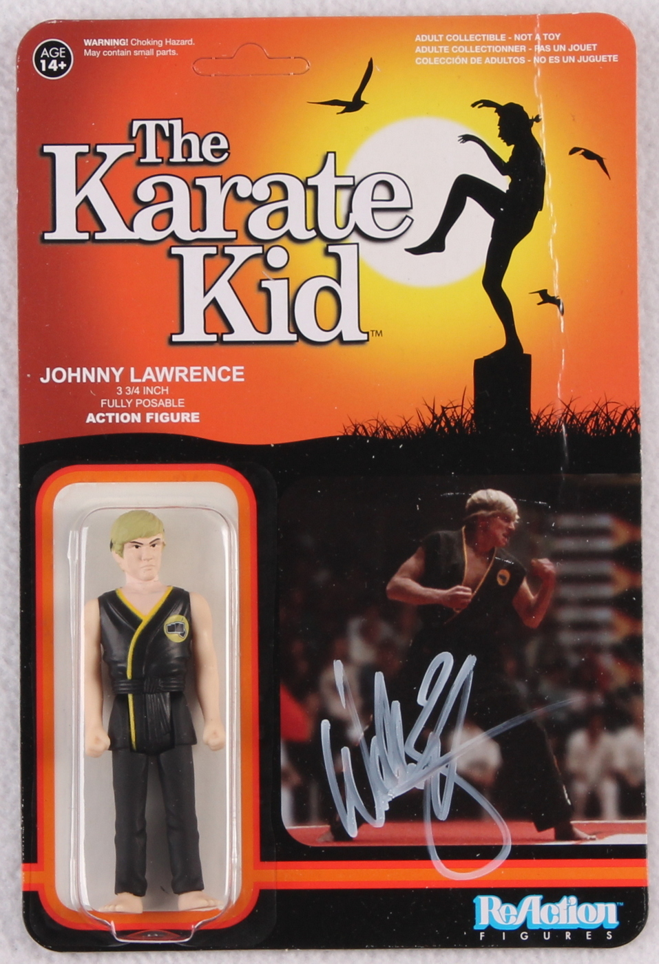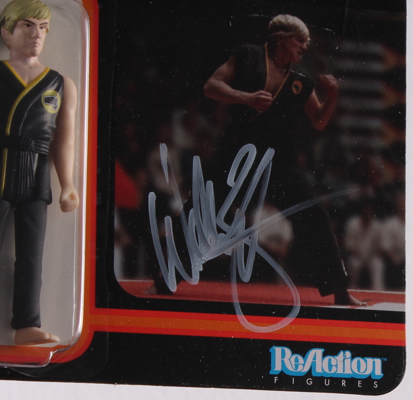 Figure measures approximately 3.75" tall and is hand-signed on the packaging in white paint pen by William Zabka (Johnny).