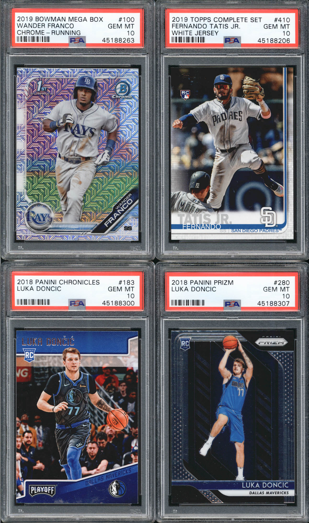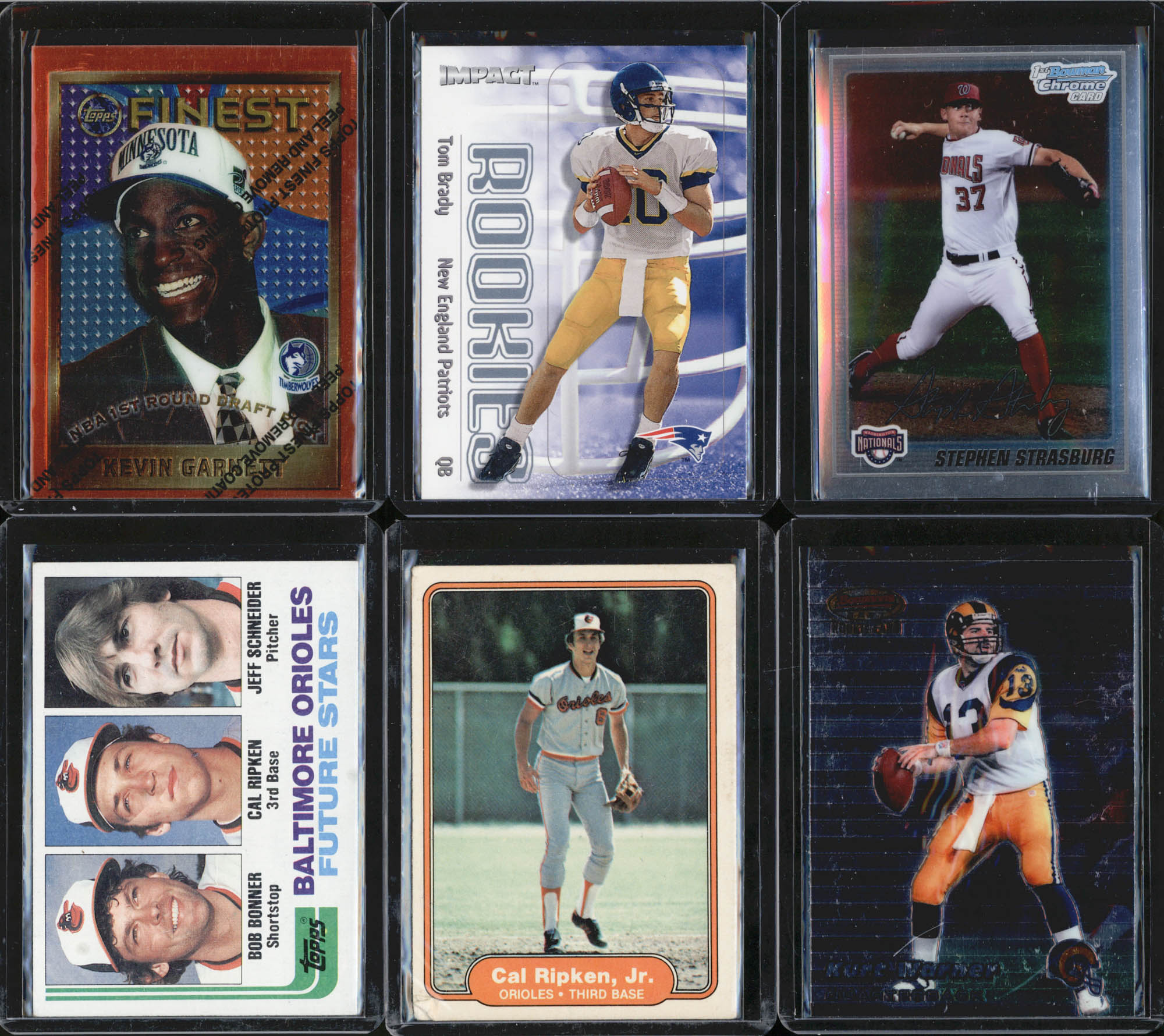 We loaded these boxes up with TONS of stars and Hall of Famers. Look for cards of Luka Doncic, Mike Trout, Ken Griffey Jr., Mickey Mantle, Derek Jeter, Peyton Manning, Carl Yastrzemski, Hank Aaron, Willie Mays, Clayton Kershaw, Kobe Bryant, Tom Brady, Cal Ripken Jr, Kevin Garnett, Bryce Harper, Kurt Warner, Dan Marino, Gale Sayers, Stan Musial, Ernie Banks, and More.