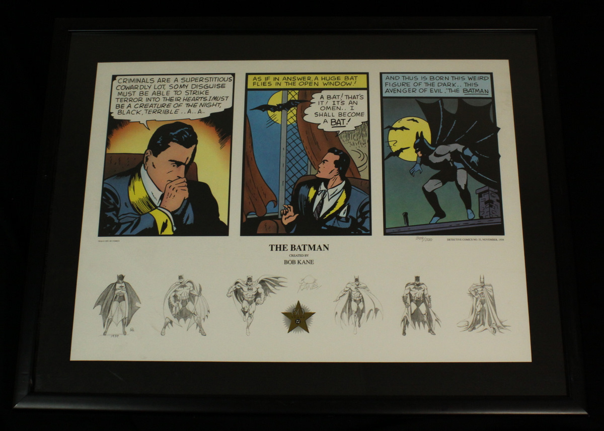 Bob Kane Signed Limited Edition Oversized Batman Lithograph: Custom Framed 30x23 Piece (PA LOA)