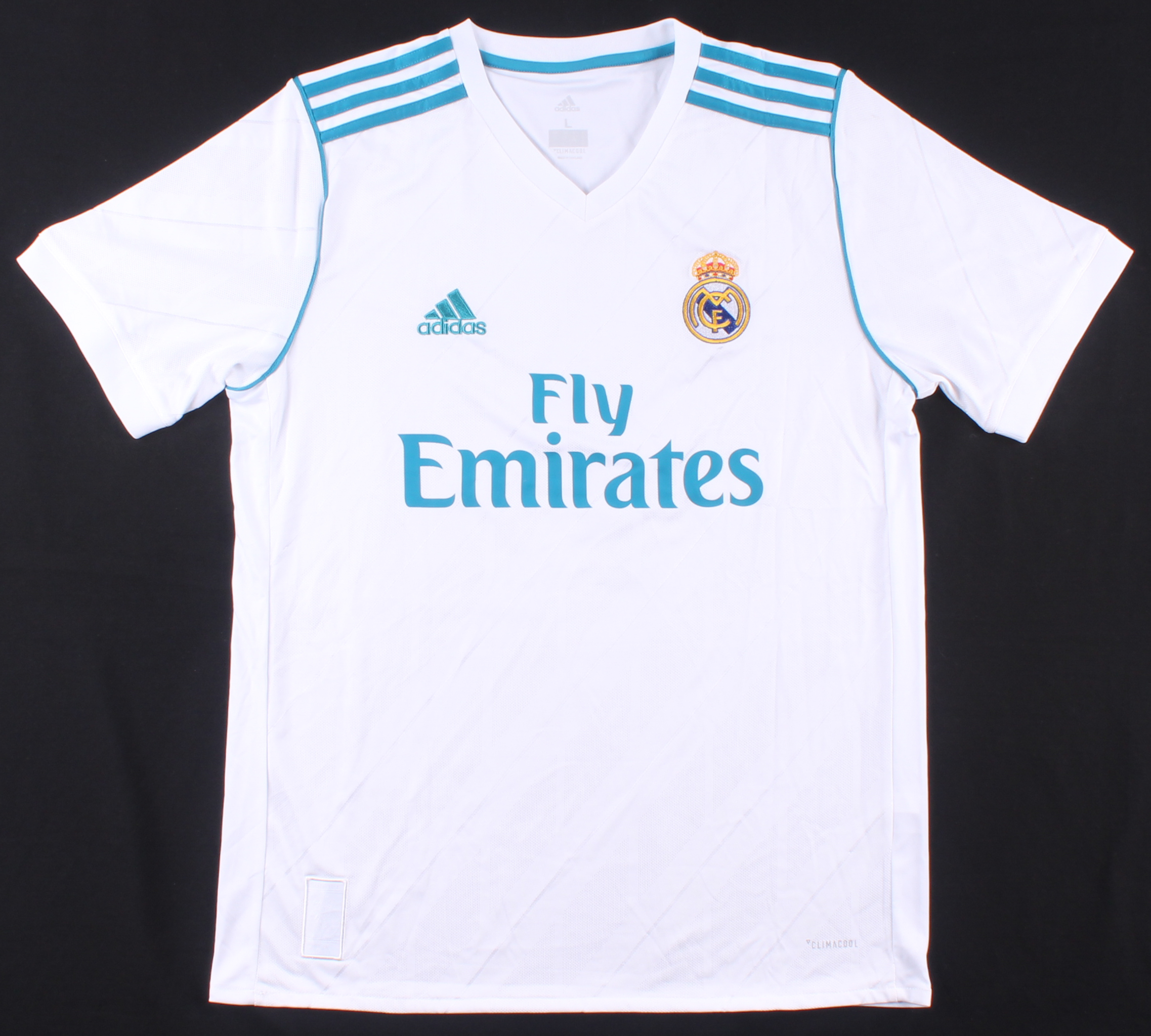 Adidas Real Madrid on-field style jersey. Everything is printed on, size XL. Hand-signed in black felt-tip pen by Cristiano Ronaldo. Please see photos for details.