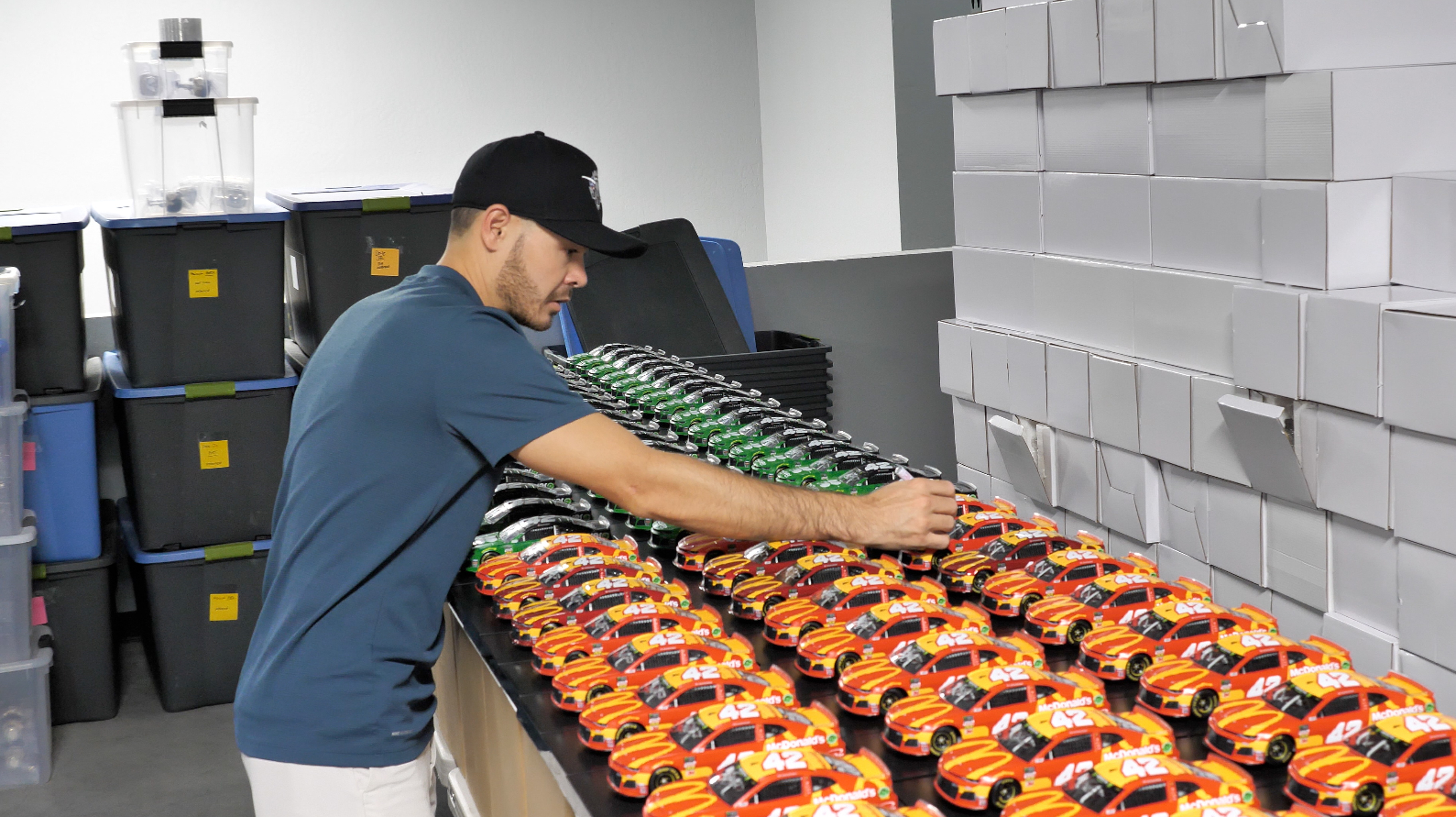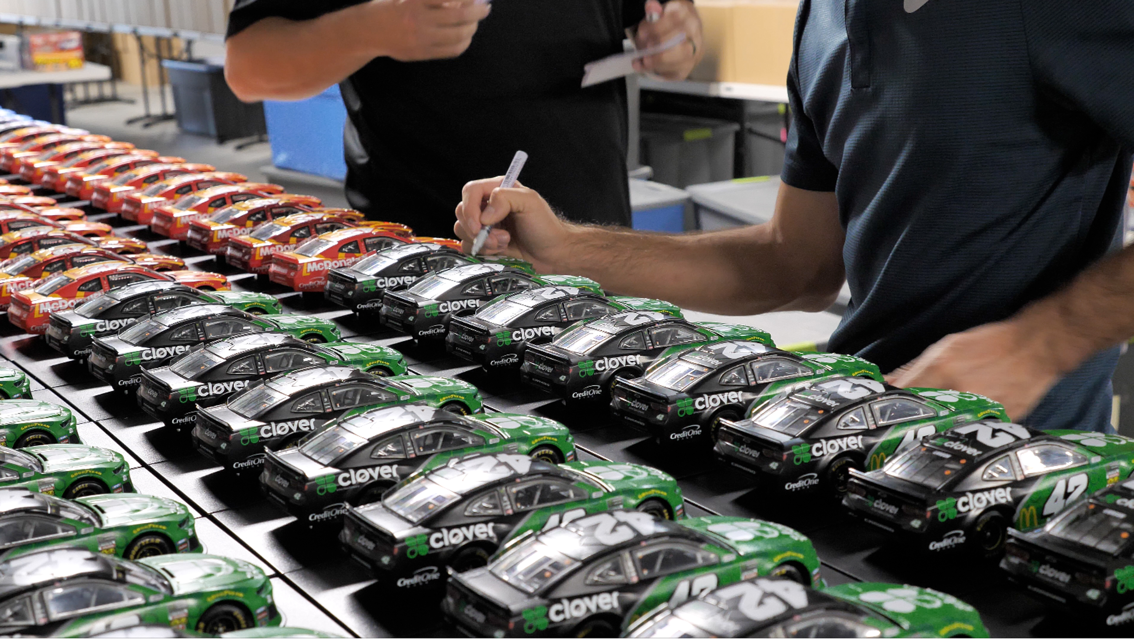 Premium die-cast car hand-signed on the windshield in silver paint pen by Kyle Larson. The car is limited edition to just 505 produced and includes the original packaging.
